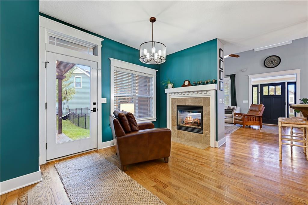 Charming Craftsman-style 2-story home featuring 4 spacious bedrooms, 3.5 baths, and a finished basement! Recent updates include a new roof plus HVAC & most kitchen appliances replaced in 2022! The inviting hearth room offers built-in shelving and a see-through fireplace shared with the great room, perfect for cozy evenings. Enjoy thoughtful touches throughout: window/storage seats in two bedrooms, a functional mudroom nook, vaulted ceilings, beautiful hardwood floors, and plush carpet. The private master suite boasts its own deck for relaxing mornings. The finished lower level includes a full bath and abundant storage space. The kitchen is equipped with stainless steel appliances and a walk-in pantry. Step outside to a fenced backyard with a sprinkler system, patio, and room to entertain. Don’t miss this move-in-ready gem!