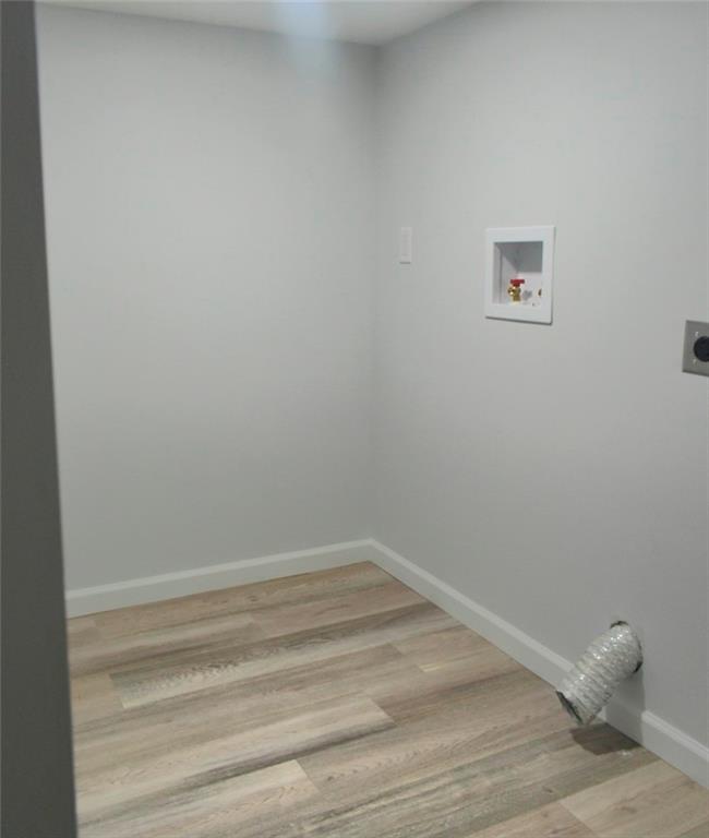 Laundry room with light wood-style flooring, hookup for a washing machine, and electric dryer hookup