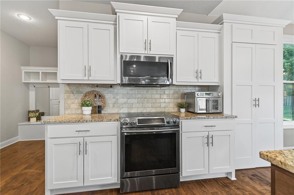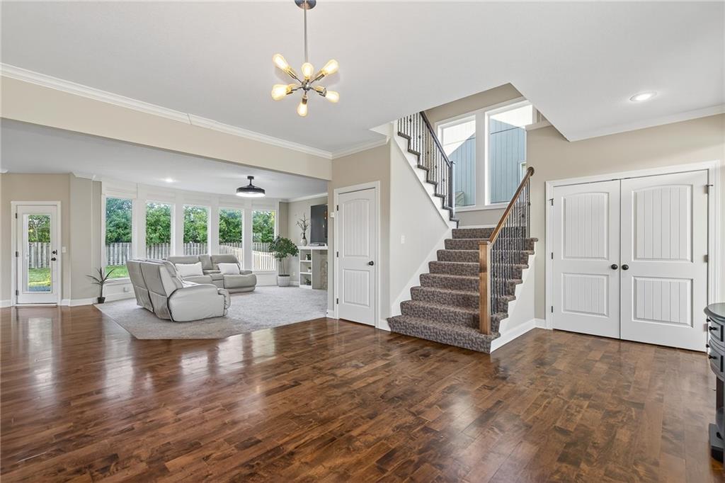 MUST SEE ** STALEY High School ! ** Only 8 years young with *PRIVATE Backyard!** Stunning, natural light-filled 4-bed home with a truly private, treed backyard that backs to open farmland greenspace — no rear neighbors. The covered patio, can easily be screened in, overlooks a patio and fire pit area perfect for year-round entertaining. The heart of the home is an entertainer’s kitchen with an extra-large island, abundant counter space, granite countertops, an extra-large coffee bar, and a HUGEEE walk-in pantry with slide-out shelving PLUS a drop zone right off the garage! Spacious rooms, wide hallways, and closets galore provide everyday comfort and organization. Upstairs laundry and a large primary suite with oversized closet and spa-like shower complete the thoughtful layout. Finishings feel like new & shoes have NEVER been worn inside! Includes a 3-car garage with added electrical hookups, built-in shelving + sprinkler system. Unfinished Basement includes an additional 1,064 sq ft to make it your own with hookups for future bathroom & plenty of space for another bedroom or two! Total sq ft including unfinished = 3860 sq ft. Community amenities include pool, park, and two stocked ponds. Did we mention the location!? 10-15 minutes from everything you need — schools, shopping, entertainment, airport, downtown and more!