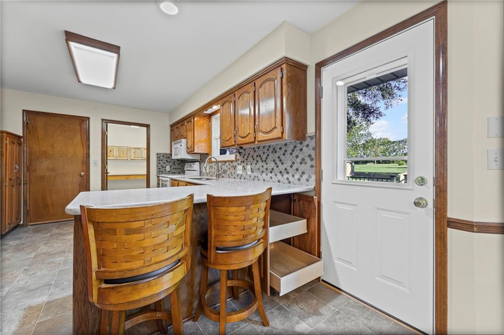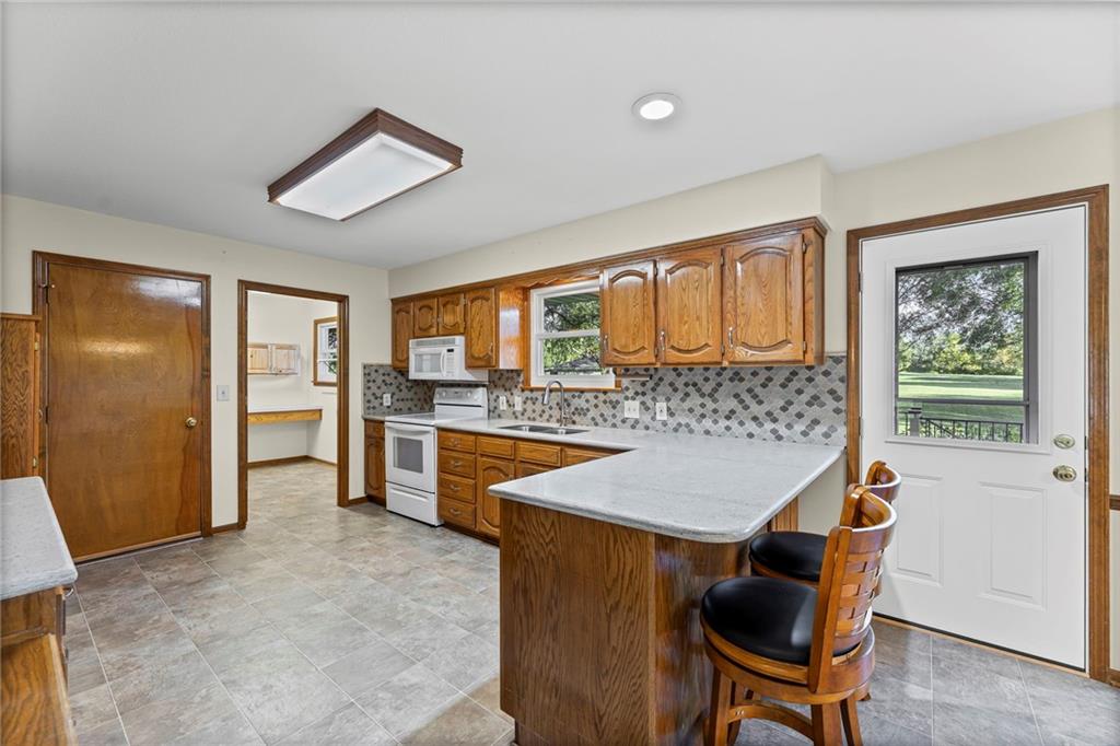 Check out this spacious true ranch on 1.64 acres! Peaceful setting at the end of a quiet street of small acreage homes. True one level living with 3bedrooms/2baths and laundry room on the main floor. The big kitchen has newer countertops & backsplash, custom roll-outs in the pantry and other lower cabinets & a great view of the backyard! Full basement with a half bath & separate third garage offers loads of storage and possibilities for expansion if you need more living space. Enjoy your morning coffee on the covered front porch and watch the sunset from the large deck off the kitchen! Updates include windows, vinyl siding, composite deck, counters & backsplash, roll-out shelves and more. Wonderful neighbors & no through traffic here!