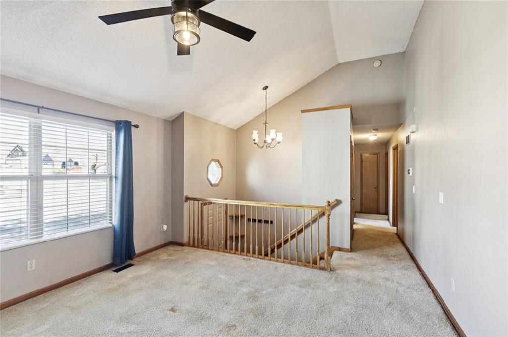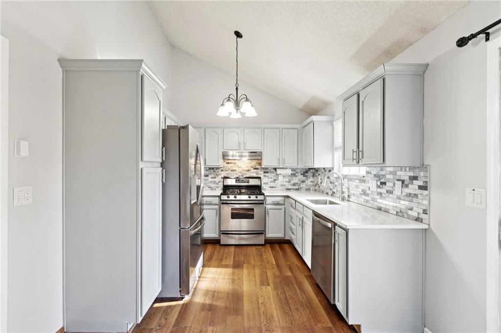 Wow! Check out the curb appeal, mature trees and large corner, cul-de-sac lot when you pull up to this home! As you walk inside, you'll immediately notice the tall, vaulted ceilings and warm, cozy fireplace in your spacious living room! Then, venture into the completely UPDATED kitchen with quartz countertops, painted cabinets, under cabinet lighting and pantry with pull-out shelves! All stainless steel appliances stay! Updated smart switch lighting throughout main level! Enjoy extra family space in your finished lower level family room with half bath! Relax outside on your large deck overlooking the fenced backyard and green space beyond that! And, to top it off, look at these big ticket items that are already done for you: Furnace and Air Conditioner only 3 years old! Roof and gutters only 2 years old! Garage door openers only 2 years old! Hurry! Don't miss your opportunity to get into this beautiful home in Liberty school district!