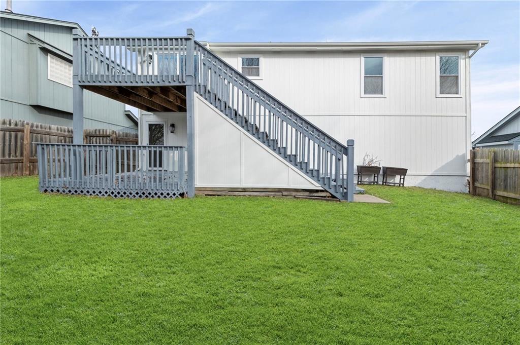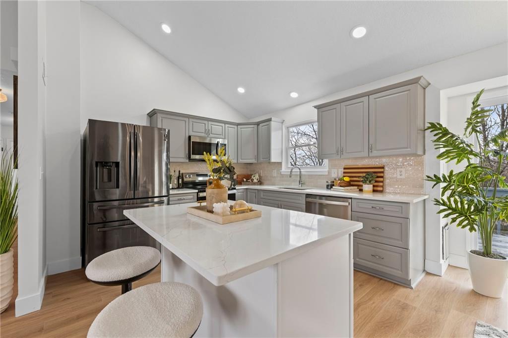 This beautifully updated 3-bedroom, 2-bath home offers 1,686 square feet of modern comfort in the desirable Line Creek Meadows subdivision. The bright and open floor plan features a fully updated kitchen with freshly painted cabinetry, quartz countertops, stainless steel appliances, and a brand-new center island designed for everyday living and entertaining. The adjoining dining area opens through sliding glass doors to a spacious deck, creating an ideal indoor–outdoor flow. The inviting family room includes a gas fireplace that serves as a warm focal point for the main living space. The primary bedroom offers a private, updated bath with a new vanity, new flooring, a beautifully tiled shower, and modern lighting. The main bathroom has also been refreshed with new flooring, updated lighting, and contemporary finishes. New flooring is found throughout the home, and the exterior has been freshly painted to enhance curb appeal. The walkout basement features new luxury vinyl plank flooring, an updated laundry area with the washer and dryer included, and direct access to a second deck that overlooks the backyard. A small storage shed is located at the rear of the property, offering additional convenience for tools and outdoor equipment. This home is located in the Platte County R-III School District and is served by Barry Elementary School, Platte Purchase Middle School, and Platte County High School. Buyers are encouraged to verify school boundaries with the district. Convenient access to major highways including 152, I-29, and MO-9 makes commuting easy, and nearby attractions include Line Creek Park and Ice Arena, Line Creek Trail, the Barry Road retail corridor, and the Zona Rosa shopping and entertainment district. With modern updates, multiple outdoor living spaces, and a prime Northland location, this move-in-ready home is ready to impress. Schedule your showing today.
