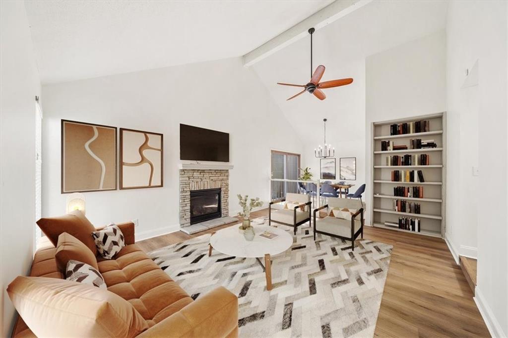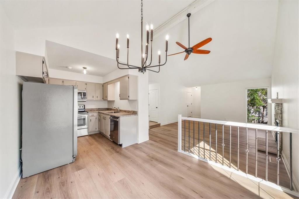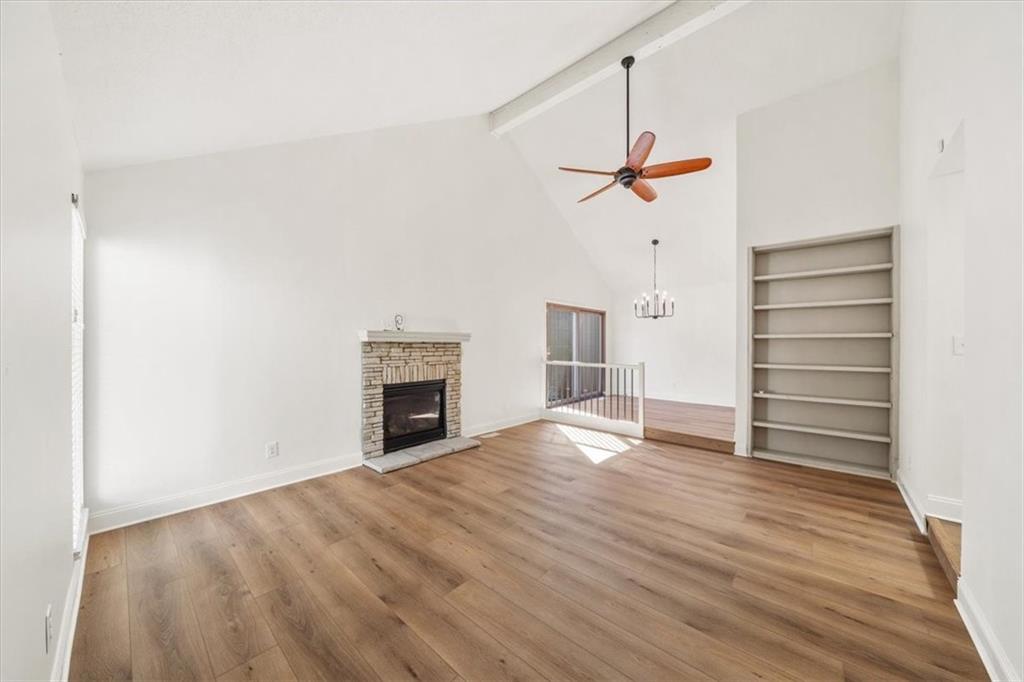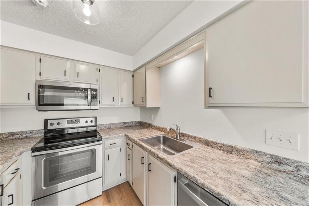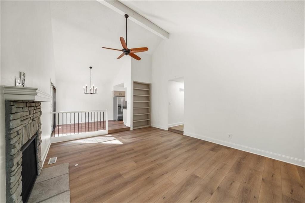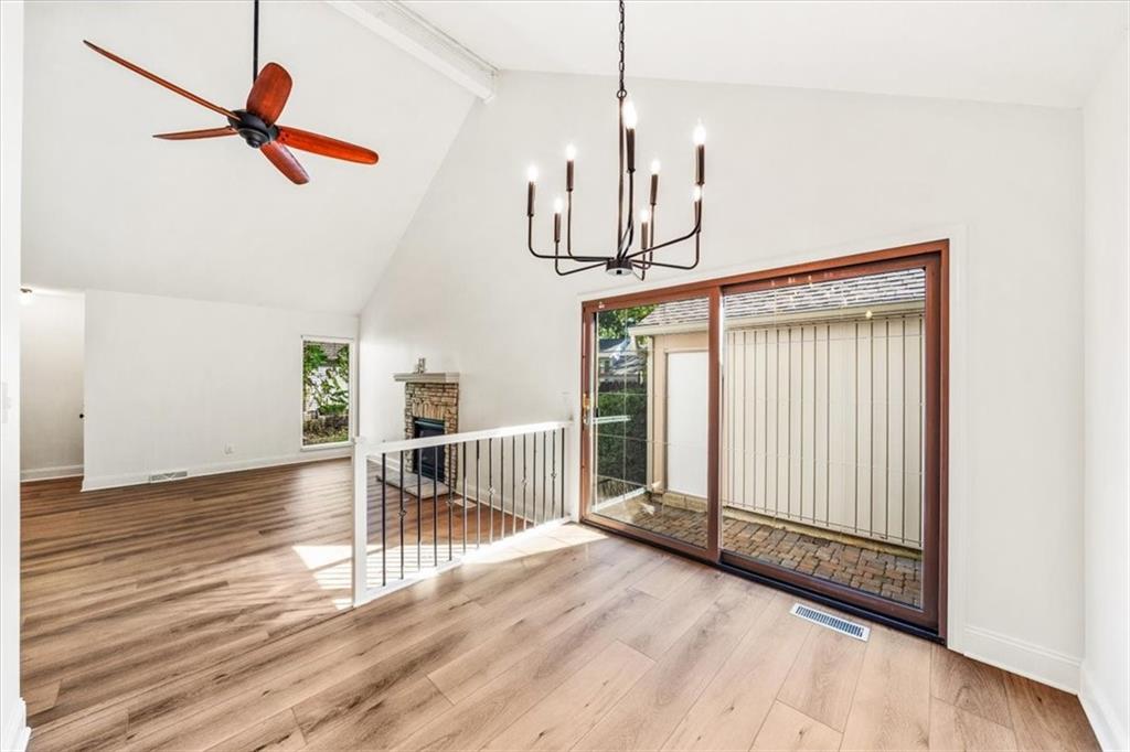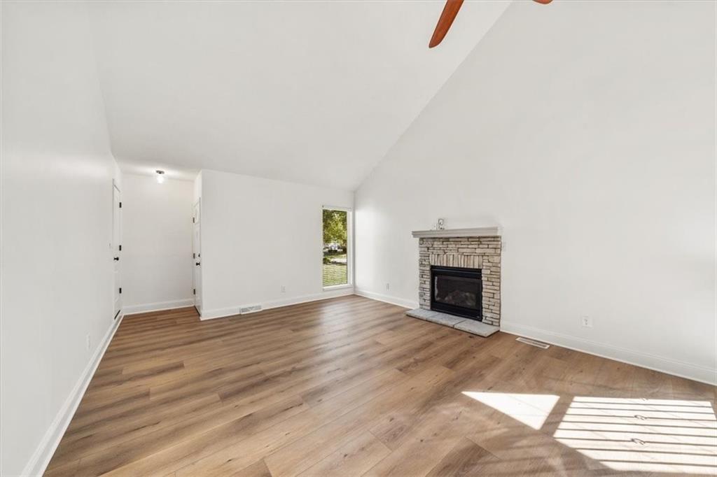 Welcome home! This beautiful spacious ranch townhome has been recently updated and is move in ready! New LVP flooring throughout the first floor. Interior has been freshly painted with neutral colors and new light fixtures hung! Three bedrooms and 2 bathrooms on main level. Open concept dining/living area featuring soaring vaulted ceilings and a cozy fireplace.. Dining space conveniently opens to fenced courtyard making a lovely private place to entertain. Secure access to garage from courtyard. Large family room in the lower level with convenient access to laundry and walk out to back yard. Additionally, there is an unfinished room equipped with multiple electrical outlets that would provide a great space for a workshop, craft room, music studio, home gym, and/or storm shelter. Lots of closets and storage in this home. All new windows and recently replaced roof. Located in a well-maintained community with walking trails & a pool near many restaurants, grocery stores, and retail venues. Only 20 minutes from KCI or downtown KC. Don't let this one get away! There's a reason homes don't stay on the market long in The Trails! All numbers, measurements, taxes and schools deemed accurate but to be verified by buyers and their agents.