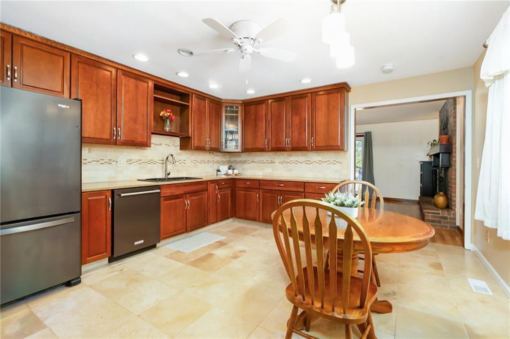 Lovely 3 bedroom, 2 bath ranch home on FULL unfinished basement with a 2 car garage. The large eat in kitchen with ample cabinetry allows for storage of everything needed to become the next top chef and cook to your hearts delight. The kitchen cabinets are made of Cherry Wood and have soft close drawers and cabinets. Laminate floors in in the entry and the living room for easy maintenance. In addition, the living room has a brick fireplace to warm those winter nights and easy access to the back patio and back yard for hanging out or entertaining. The kitchen has access to a small wood deck in the side yard for a more intimate setting. Primary bedroom has a walk in closet and and an ensuite. The spacious full basement allows so much opportunity for extra square footage. AC is only 2 years old and the furnace is only 1 year old. All kitchen appliances, washer, dryer and pool table in basement all stay. Located in charming Ottawa with it's amazing historic downtown area, the worlds oldest operating purpose-built cinema, the Prairie Spirit Trail for bike enthusiasts, antique shops and restaurants and the list goes on. Perfect for commuters to the Kansas City area, Johnson County or Lawrence. Come take a look at this wonderful home and fall in love.
