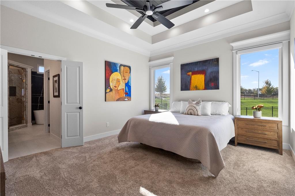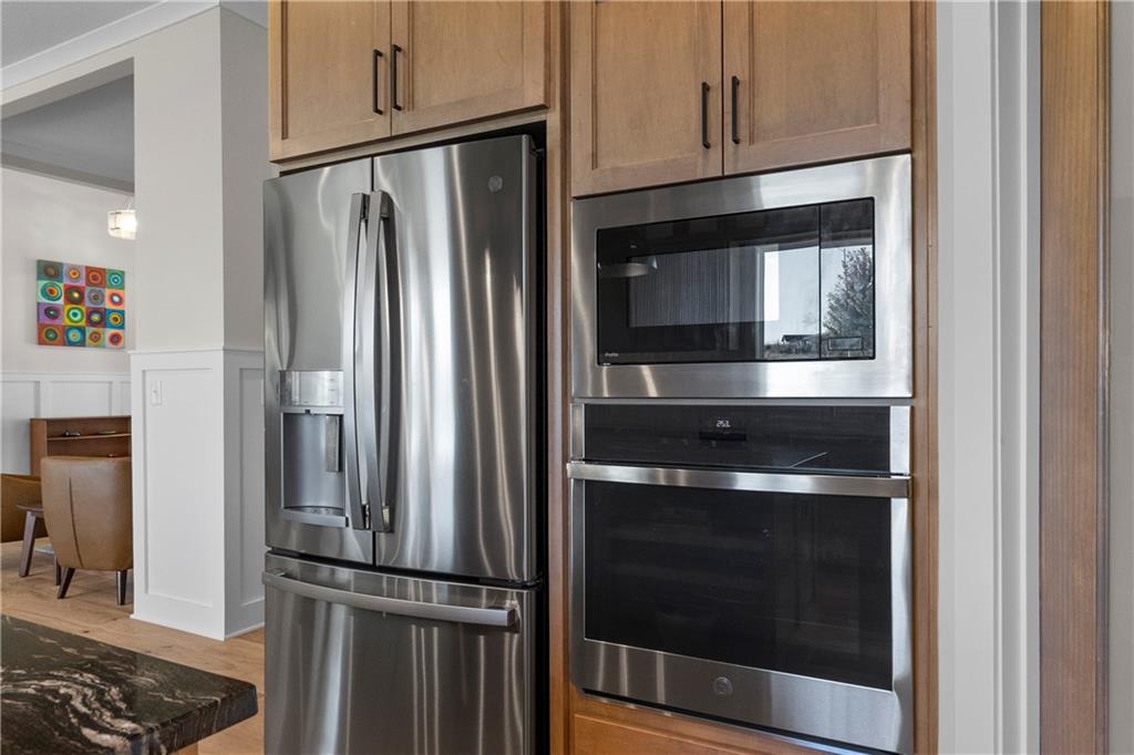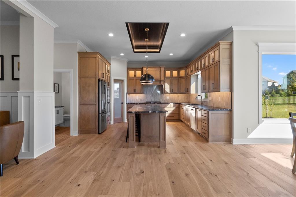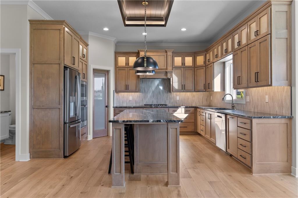 IMMACULATE NEARLY-NEW RANCH - this stunning home, less than a year old, blends modern upgrades with effortless style. Featuring 3 spacious bedrooms and 2.5 bath, the open-concept layout is filled with natural light from large Pella windows and high ceilings throughout. Enjoy designer touches like upgraded, highly figured granite countertops, maple kitchen cabitnets with over-and-under-lighting, and a feature wall in both the living room and primary suite. The kitchen boasts top-tier appliances (upgraded GE Profile Refrigerator and Dishwasher) perfect for entertaining or every day luxury. Relax by the gas fireplace or step outside to a covered patio overlooking a beauitfully landscaped yard with additional trees, landscaping and a fenced in backyard. Smart conveniences include remote-controlled shades in the living room and primary bedroom, plus pull down shades in the guest rooms. The lower level can be finished to meet your needs if you need extra space. With thoughtfull upgrades inside and out, this home is truly move in ready - nothing to do but unpack and enjoy.