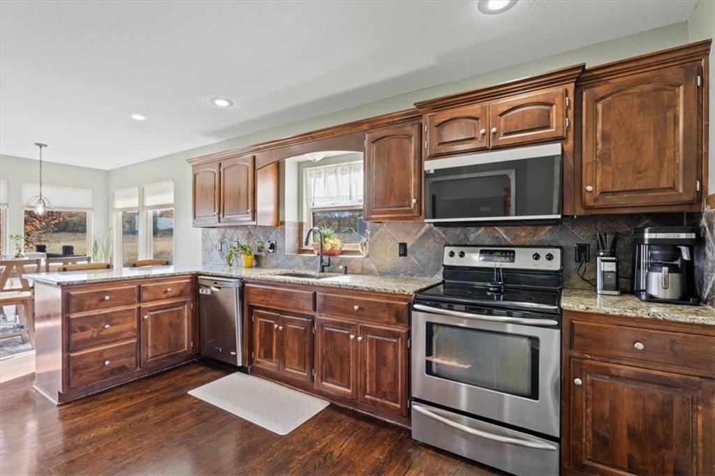 **Be Home for Christmas! **BACKS UP TO GREENSPACE AND WALKING TRAIL! This stunning 4-bedroom, 3-bath, 2,184 sq. ft. split-entry home is packed with upgrades and style — a total showstopper inside and out! From the eye-catching stone and stucco exterior to the beautiful trim work, iron spindles, and 3-car garage, this home was built to impress. Step inside and fall in love with the bright, open floor plan, gleaming hardwood floors, and custom details at every turn. The gourmet kitchen features rich alder cabinets, Frigidaire oven, Samsung Refrigerator and Microware, a walk-in pantry, and plenty of space to entertain this holiday season. The spacious master suite feels like a retreat, complete with a corner whirlpool tub and a luxurious bath you’ll never want to leave. Downstairs, the finished lower level offers endless possibilities — use it as a 4th bedroom, guest suite, or massive great room for movie nights and gatherings. Best of all — the backyard opens to greenspace and a walking trail! Enjoy peaceful views, extra privacy, and easy access to the community lake for fishing, club house for rent and pool just steps away! Upgrades everywhere. Location you’ll love. Lifestyle you deserve. Make this home yours — and be celebrating the holidays in style!