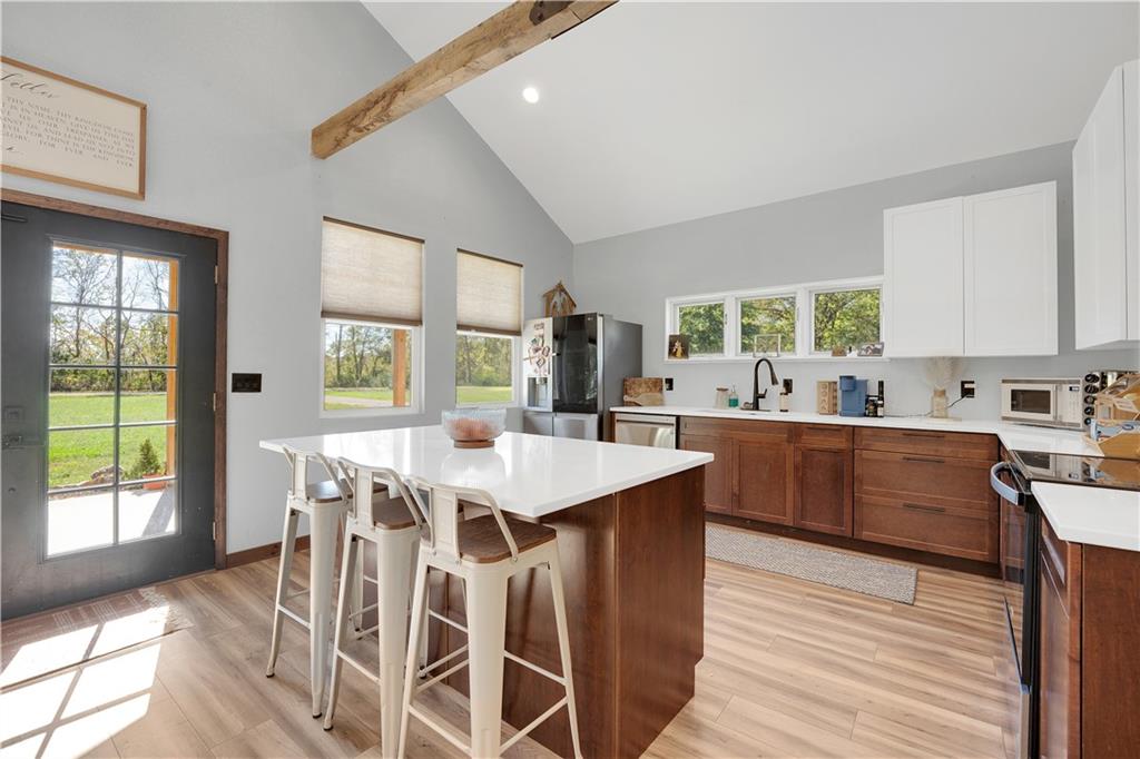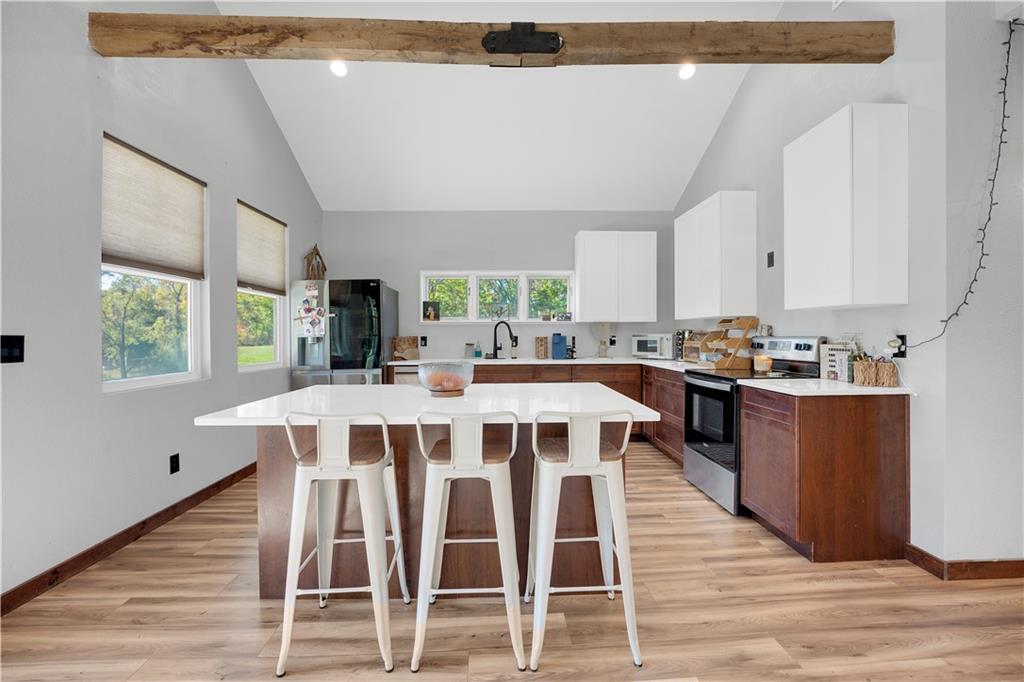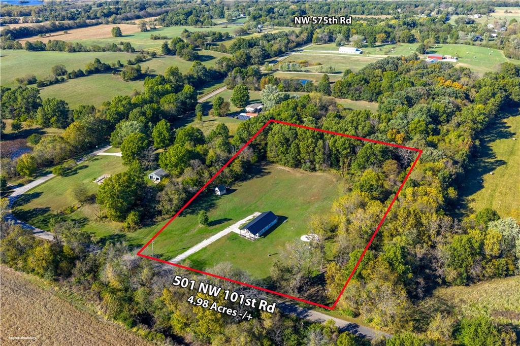 Just North of Warrensburg in the most desirable area of Johnson County, you will find a newly constructed (2023) ranch home on 5 acres of rolling green space, wooded hunting ground, and explorable creek! This farmhouse style home has modern finishes, wood beams, and thoughtful details. It was built with intention! Four spacious bedrooms and 2 large bathrooms, lofted space for additional room, and an open + vaulted kitchen and living space, a lovely covered front porch. There is plenty of space to add a garage or numerous outbuildings. The property is in the Hazel Hill area with a recreation lake nearby and close to land conservation efforts. This is truly a gem of a property - you will want to see it!