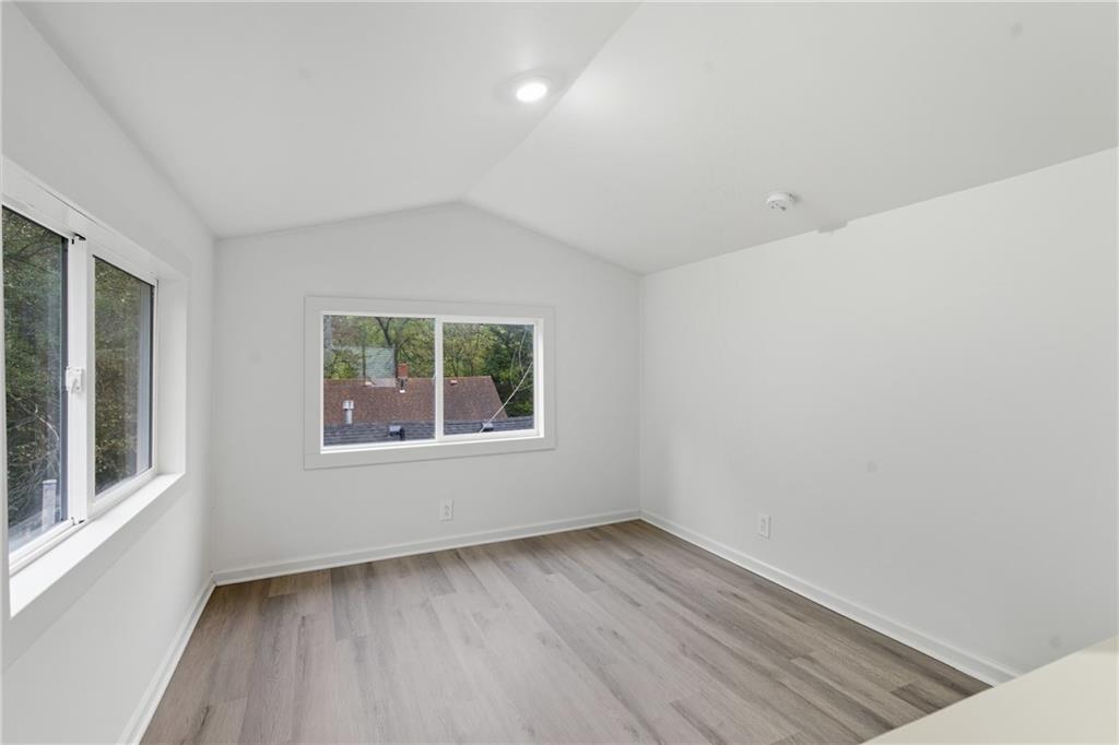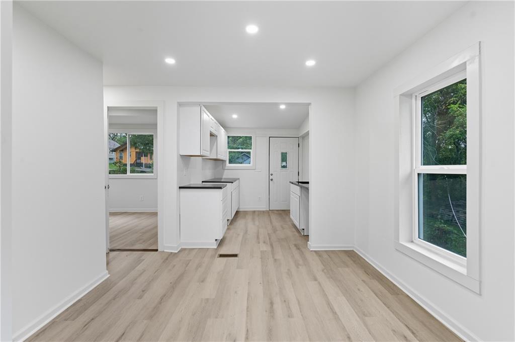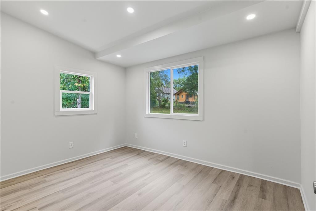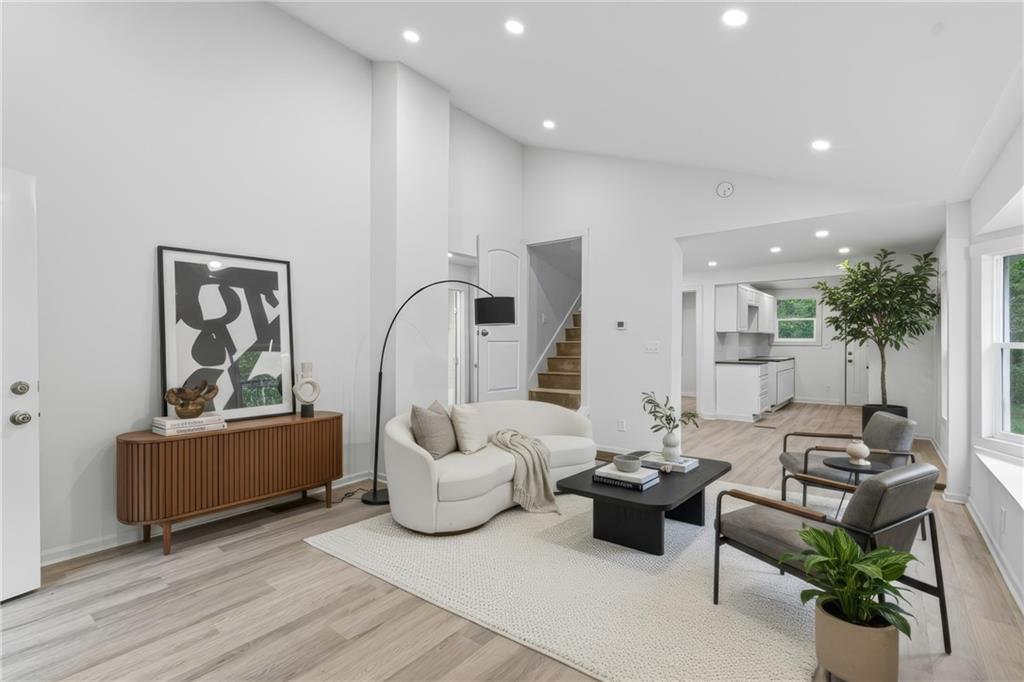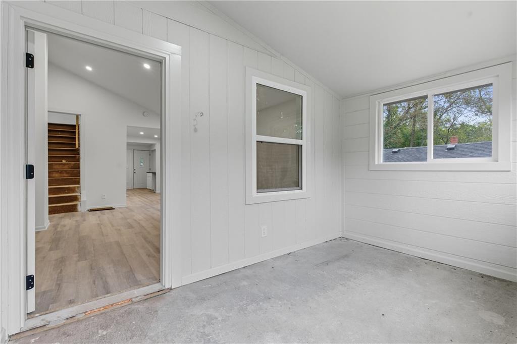 Completely Rebuilt New Modern Home This stunning 3-bed, 2-bath home on a ¼-acre double-lot bonus offers the feel of new construction at an incredible value. Rebuilt from the studs up, it features brand-new roof, siding, HVAC, plumbing, electrical, energy-efficient windows, doors, walls, water heater, and flooring—every detail refreshed for long-term comfort. Step inside to a modern open-floor-plan design filled with natural light and a large new bay window with seating. The vaulted ceilings and recessed LED lighting create spaciousness, while the new flooring ties every room together with warmth and style. The large living and dining area flows into a bright kitchen with granite countertops, all-new cabinetry, and a layout ideal for gatherings and everyday living. Both bathrooms are fully rebuilt with designer tile, modern fixtures, and all-new plumbing. The primary bath offers a walk-in shower, while the second bath includes a deep soaking tub for relaxation, modern Laundry for a washer and dryer with ready hookups. Three generous bedrooms feature new walls, trim, and doors—each designed for comfort, privacy, and restful nights. Two bedrooms with vaulted ceilings are on the main floor, one large bedroom and a separate play area are upstairs. The enclosed sun porch brings the outdoors in, surrounded by large windows that flood the space with light year-round. A new deck overlooks a lush green lawn, ideal for barbecues, play, or gardening. The ¼-acre double lot provides rare outdoor space for expansion or a future garage. A new concrete-floor basement offers clean storage, a workshop, or gym potential. With every major system replaced, this home delivers modern efficiency, low maintenance, and complete peace of mind. Conveniently located near downtown, parks, it combines quality craftsmanship with neighborhood charm—a bright, open, move-in-ready home that truly feels brand new.
