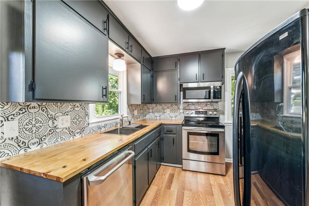 Amazing turn key opportunity in a lovely neighborhood--come snag this updated home! Conveniently located just minutes away from Parallel Pkwy, you are super close to everything you need. Walking up you are greeted with a newly built front porch. Inside you'll find every part of the home touched with updates: Freshly painted walls, brand new carpet and laminate floors, brand new windows AND brand new garage door. The fun doesn't stop there! Feel at ease knowing that you also have a brand new roof, newly blown insulation in the attic, HVAC system (high efficiency too!!) and a brand new water heater, as well as new plumbing and electrical. The kitchen features all electric appliances, stylishly painted cabinets with matte black hardware, an adorable tiled back-splash with freshly stained and sealed butcher block counter tops. Enjoy a spacious bathroom with a newly tiled shower and tub, new toilet and HUGE double vanity. Check out the basement and the tremendous amount of storage space and easy access to your laundry area and utilities. It's more so a one car garage but you could definitely fit 2 in tandem! Outback features a brand new deck overlooking your spacious backyard that is wide open for possibilities. Take a look and move right in!