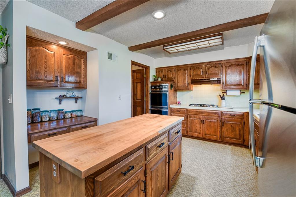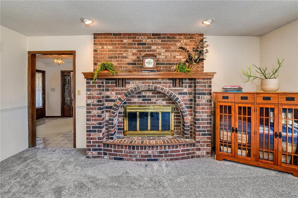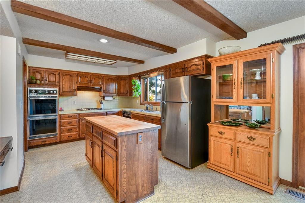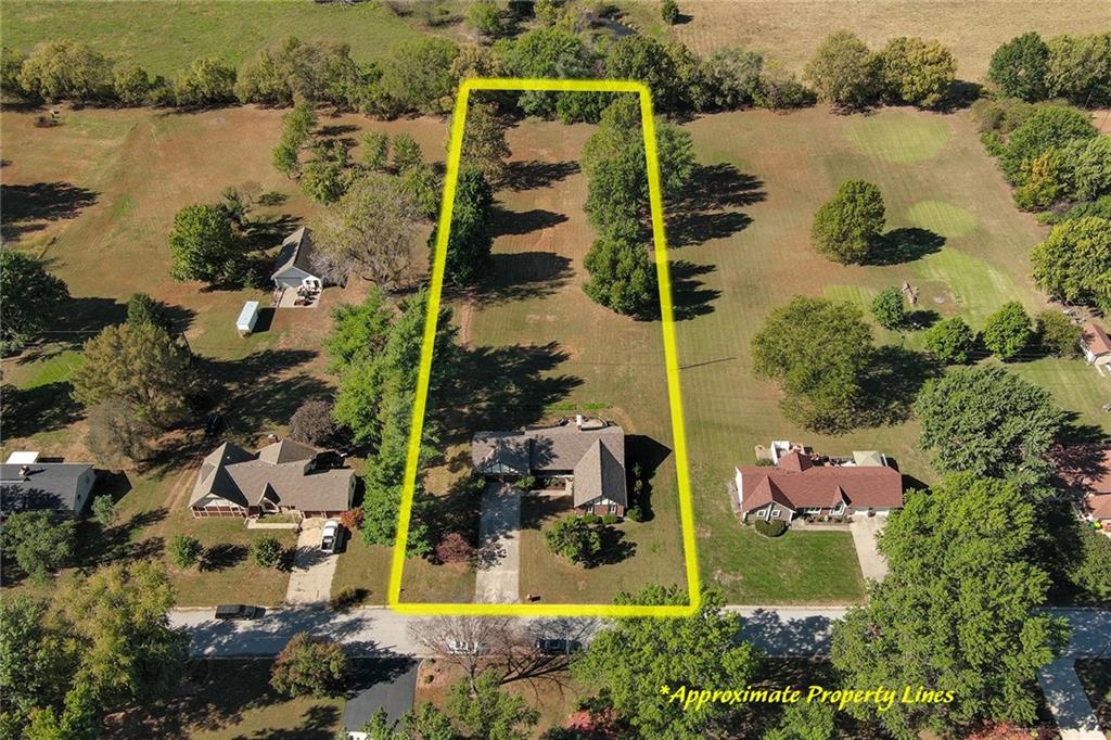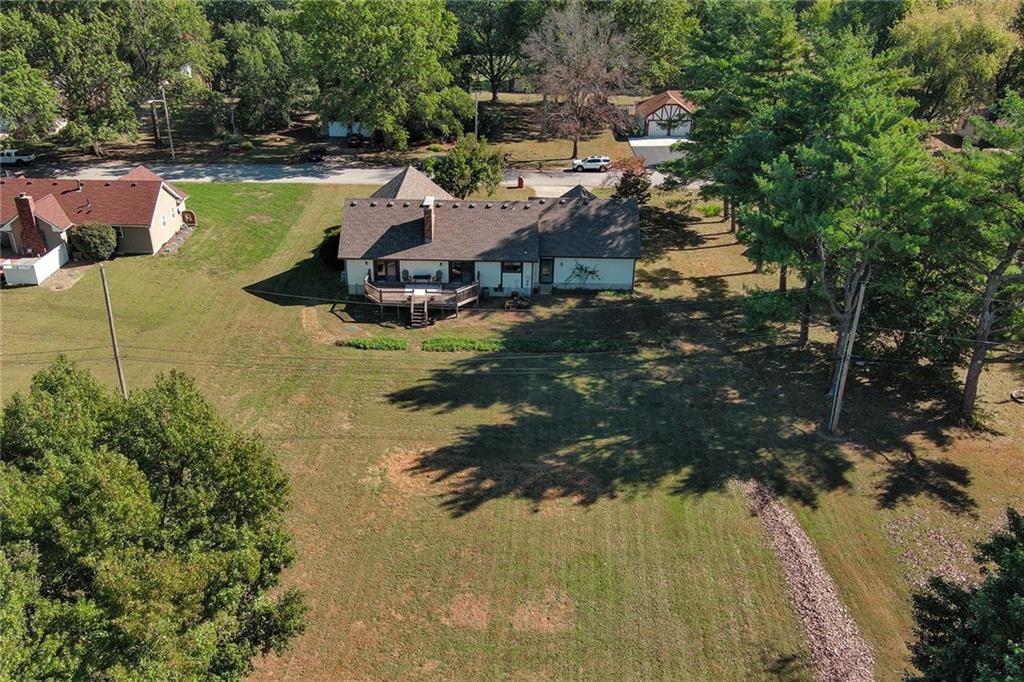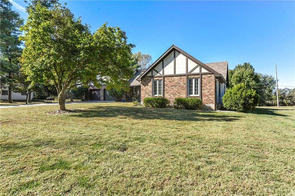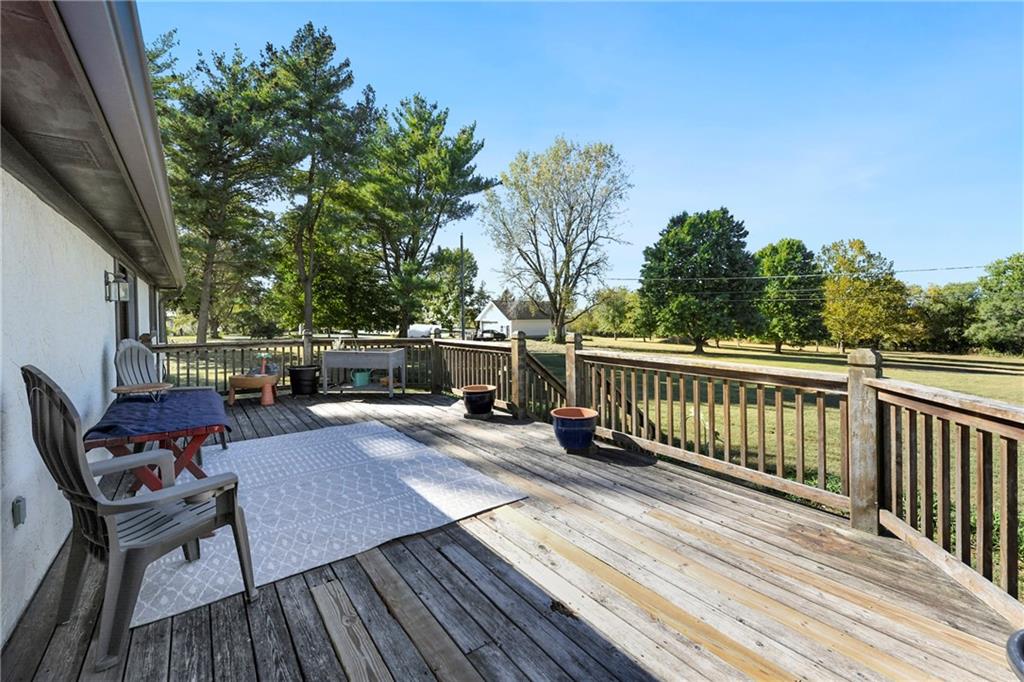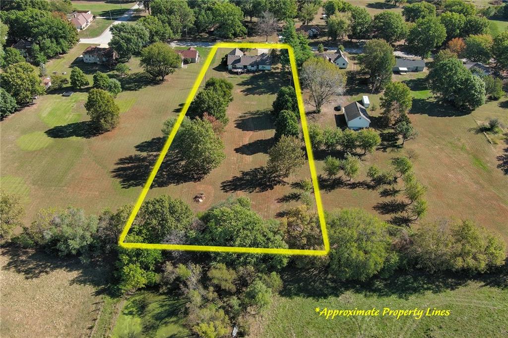 Looking for small acreage with excellent access to city conveniences and NO HOA? You may have just found your dream home! This spacious, brick-front true ranch home sits on close to 2 acres on a tranquil tree-lined street just minutes from the Legends! This home begins with great curb appeal including a large covered front porch and a beautiful beveled glass front door which ushers you in to a spacious foyer with custom tile floor and built in bookcase. On your left, the large formal dining room shines with parquet floor and beveled glass sidelights. The kitchen offers abundant cabinet space, a beamed ceiling, built-in desk, gas cooking, double oven, and a center island with butcher block countertop. The adjoining hearth room features a custom brick fireplace with built-in grill and French doors leading to the deck. It's the great room that steals the show, though, showcasing a second brick fireplace with sitting hearth, a wet bar, tons of windows and a sliding door which leads out to the deck for easy entertaining. The thoughtfully designed floor plan tucks all three bedrooms and two full baths away in a private wing of the house, separate from the main living areas. Fresh carpet and paint throughout and recent updates including hardware make it move-in ready. Additional highlights include a convenient laundry room and half bath off the kitchen, an oversized garage with direct backyard access, and a HUGE basement with tons of storage which could easily be finished into additional living space. With 3-year old ROOF & gutters, Pella windows, and a Dry Basement warranty, this home offers both comfort and peace of mind. The beautiful, manicured acreage provides level play space and plenty of room for your toys, a pool, or possible outbuilding. Located in the sought-after Piper School District, this home checks all the boxes - rural tranquility, modern convenience, and room to grow!