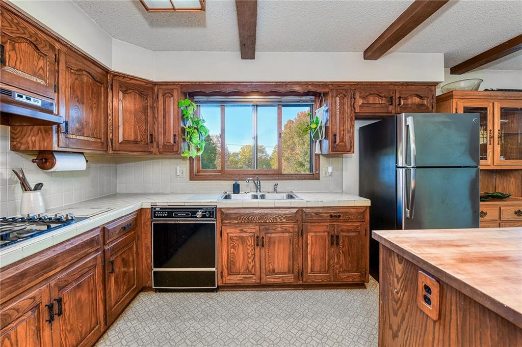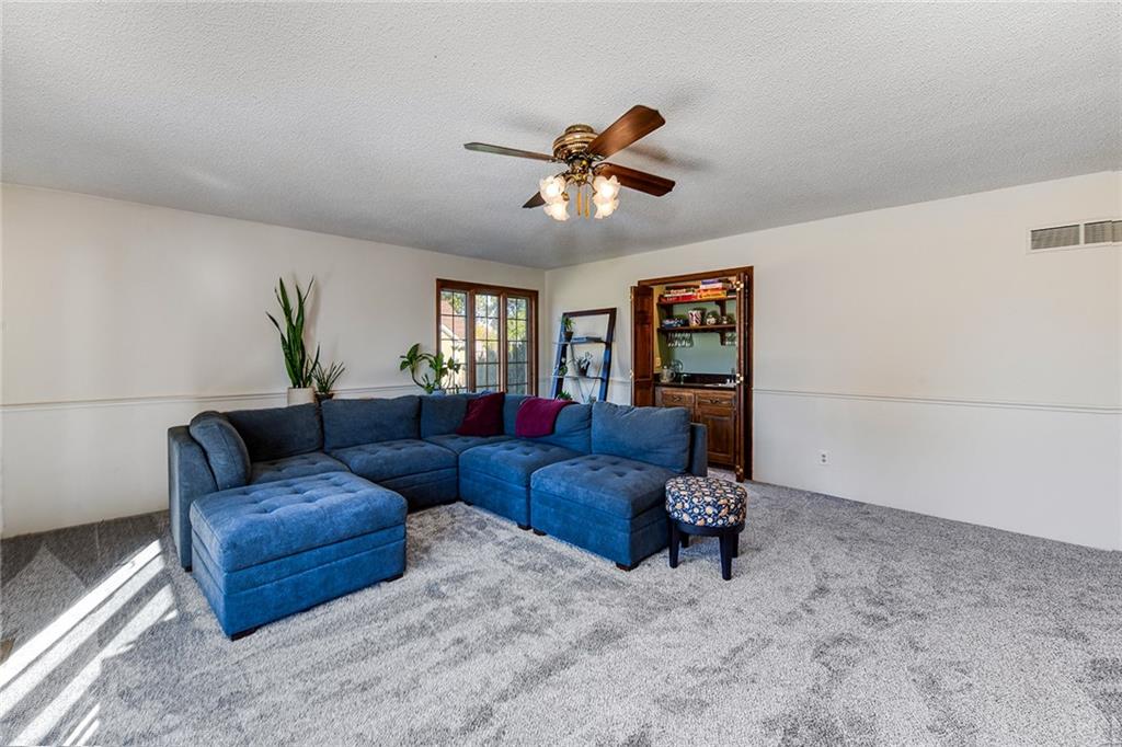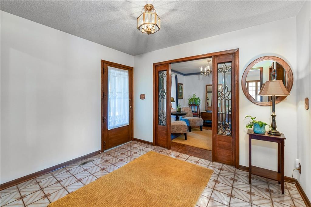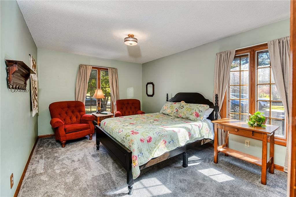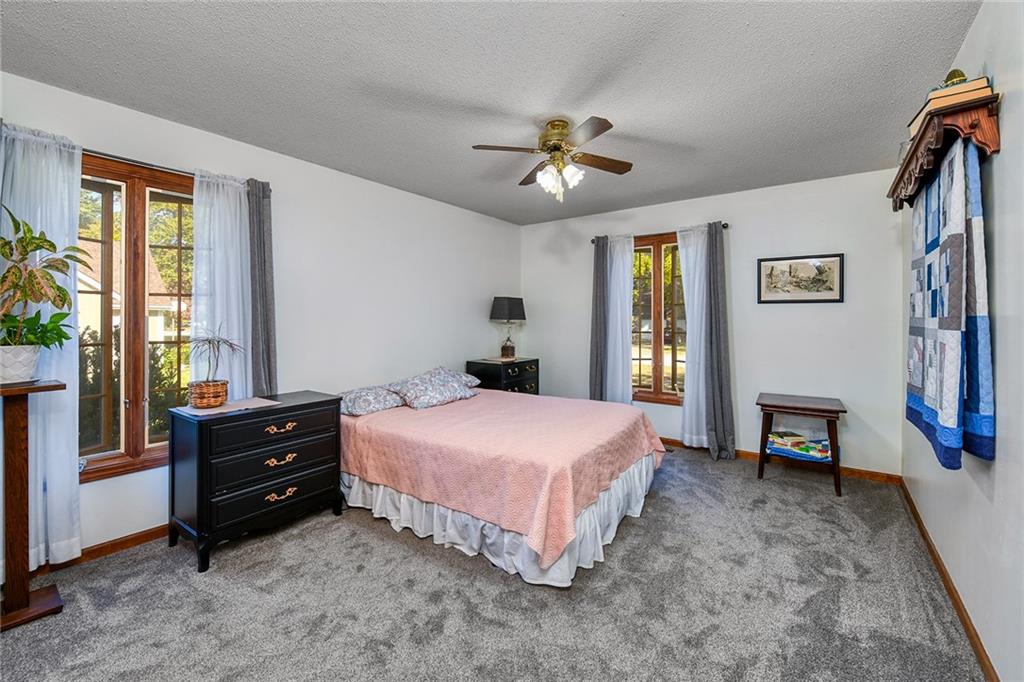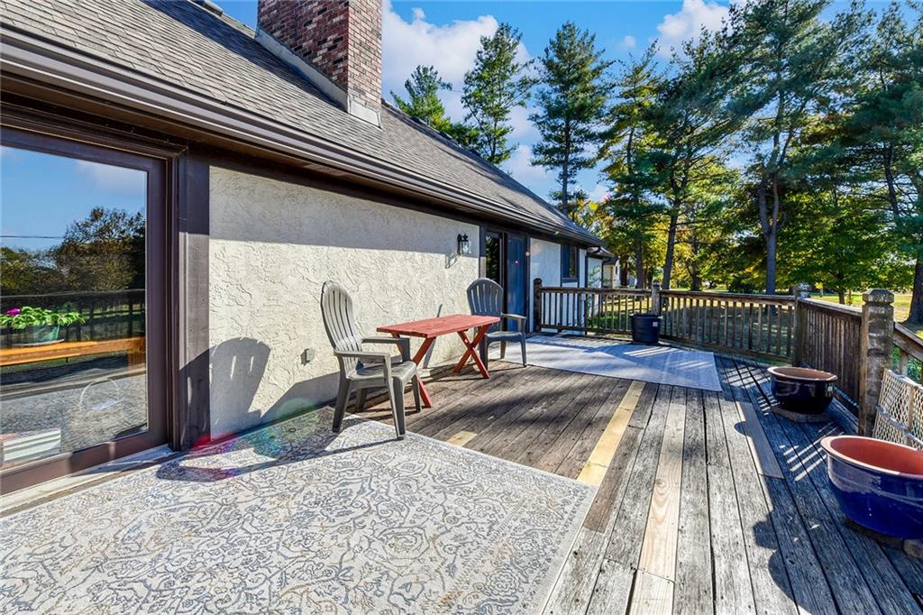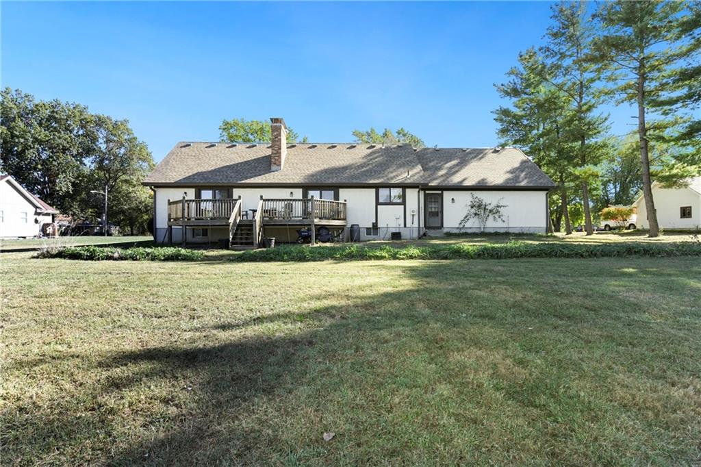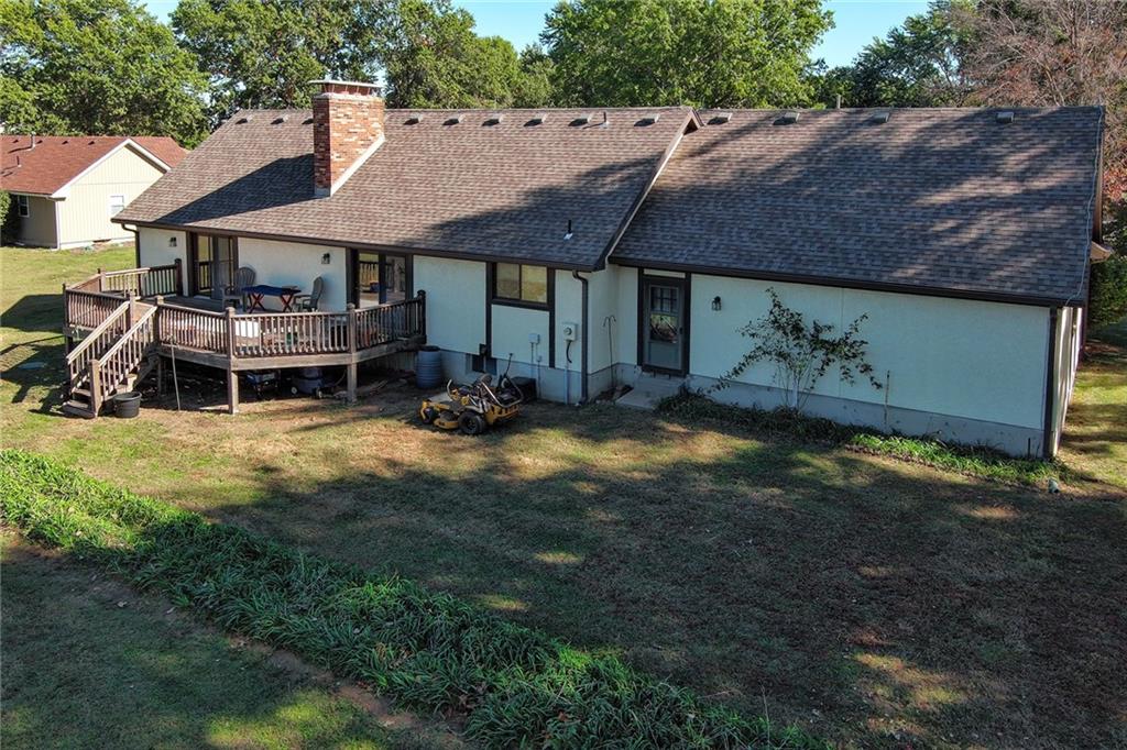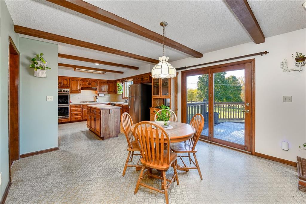 Looking for small acreage with excellent access to city conveniences and NO HOA? You may have just found your dream home! This spacious, brick-front true ranch home sits on close to 2 acres on a tranquil tree-lined street just minutes from the Legends! This home begins with great curb appeal including a large covered front porch and a beautiful beveled glass front door which ushers you in to a spacious foyer with custom tile floor and built in bookcase. On your left, the large formal dining room shines with parquet floor and beveled glass sidelights. The kitchen offers abundant cabinet space, a beamed ceiling, built-in desk, gas cooking, double oven, and a center island with butcher block countertop. The adjoining hearth room features a custom brick fireplace with built-in grill and French doors leading to the deck. It's the great room that steals the show, though, showcasing a second brick fireplace with sitting hearth, a wet bar, tons of windows and a sliding door which leads out to the deck for easy entertaining. The thoughtfully designed floor plan tucks all three bedrooms and two full baths away in a private wing of the house, separate from the main living areas. Fresh carpet and paint throughout and recent updates including hardware make it move-in ready. Additional highlights include a convenient laundry room and half bath off the kitchen, an oversized garage with direct backyard access, and a HUGE basement with tons of storage which could easily be finished into additional living space. With 3-year old ROOF & gutters, Pella windows, and a Dry Basement warranty, this home offers both comfort and peace of mind. The beautiful, manicured acreage provides level play space and plenty of room for your toys, a pool, or possible outbuilding. Located in the sought-after Piper School District, this home checks all the boxes - rural tranquility, modern convenience, and room to grow!