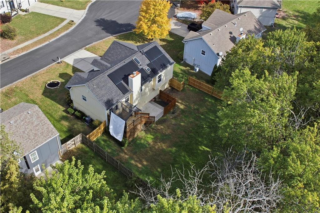 Welcome to your dream home in Greenwood, MO, nestled on a serene cul-de-sac. This move-in ready 3-bedroom, 3-bathroom residence, with a non-conforming 4th bedroom in the walk-out basement, plus a private office. Step inside to discover an entirely refreshed interior, featuring fresh paint and new flooring, creating a bright and welcoming atmosphere. The heart of the home is the spacious kitchen, which opens onto the deck overlooking the beautiful fenced backyard. Upstairs, you'll find three generous bedrooms, including a primary suite with an ensuite bathroom. An additional full bathroom serves the secondary bedrooms, providing convenience and privacy. The walk-out lower level is designed for relaxation and productivity, boasting a large family room and private office, alongside a two-car attached garage for easy access and additional storage. This home is equipped with a new fiberglass roof, which was a $28k investment, and 15 solar panels worth $27k, ensuring energy efficiency and sustainable living. The fiberglass roof, installed by Erie Metal Roof, features self-insulated roofing with deck air and visually appealing venting. It comes with 9 years of an appearance warranty remaining and 29 years of roof warranty remaining on the 45-year roof. The solar panels, installed by 816 Solar, contribute significantly to utility savings, with July and August utility bills available in supplements. Outside, enjoy the privacy of a fully fenced, flat backyard, perfect for gatherings or a peaceful retreat, complete with a small storage shed. This home also offers fiber internet options from both Google and AT&T Fiber, and the best hydrangeas in Greenwood! Don't miss the opportunity to make this move-in ready Greenwood home yours today!