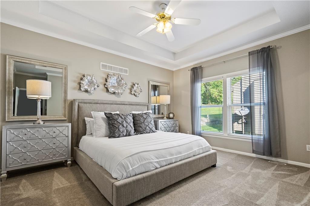 FALL IN LOVE WITH THIS 1.5 STORY IN THE DESIRABLE GRAYSON PLACE! Spacious and inviting floor plan designed for comfortable everyday living and effortless entertaining! Light and bright Great Room with center fireplace to cozy up next to during those chilly months and built-ins for storage or display your personal touches! Please the chef in this kitchen featuring dolomite marble countertops, eat-in peninsula, pantry and stainless steel appliances including double oven! Adjacent Breakfast Area and Formal Dining Room provide additional versatility on the main level. Retreat to the Primary Suite with spa-like bath including double vanity, corner whirlpool tub, separate shower and large walk-in closet. Convenient laundry room and half bath complete the main level. Upstairs find second bedroom with bonus room(play area, extended closet, pocket office), walk-in closet and adjoining bath! 2 additional bedrooms and 3rd full bath finish this level. Finished lower level offers a spacious family room, rec room with wet bar, full bath and 3 flexible bonus rooms (non-forming bedrooms, office, exercise)—perfect for movie nights or hosting guests! Step outside to the patio overlooking the beautifully landscaped yard. Fantastic location close to parks, schools, shopping, dining and easy highway access! WELCOME HOME!