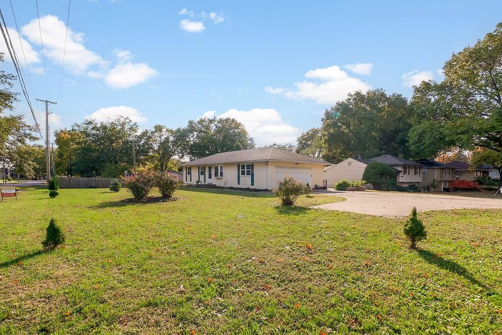 This well-maintained ranch offers classic charm and practical updates on a spacious corner lot. Step inside to find a light-filled living area and a cozy kitchen with warm wood paneling, stainless steel appliances, and durable vinyl plank flooring. The main level features beautiful hardwood floors throughout the bedrooms and hallway, while the large unfinished basement provides tons of storage or future expansion potential. Enjoy a two-car attached garage plus an additional detached garage—perfect for a workshop or extra storage. Recent improvements include a newer roof and updated mechanicals, giving peace of mind for years to come. Conveniently located near shopping, restaurants, and major highways, this home offers easy access to everything Kansas City has to offer. Whether you’re a first-time buyer, investor, or simply looking to downsize, this property combines value, function, and potential in one inviting package.