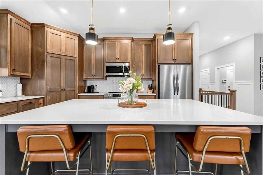 Step inside this beautifully designed home where craftsmanship meets everyday comfort. The entryway welcomes you with elegant wainscoting and flows into an open-concept main love featuring a spacious kitchen with stained cabinetry, stainless steel appliances, and a large island perfect for gatherings or meal prep.The living room offers a cozy feel with a stunning floor-to-ceiling stacked stone gas fireplace - the perfect spot to relax or entertain. Convenience meets function at the garage entry, where custom built-ins provide stylish storage and organization. The home's layout includes another living space with its own bedroom and bathroom, offering flexibility for a guest suite, home office, or hobby retreat. With its thoughtful finishes, versatile spaces, and inviting warmth, this home blends design and practicality in all the right ways.