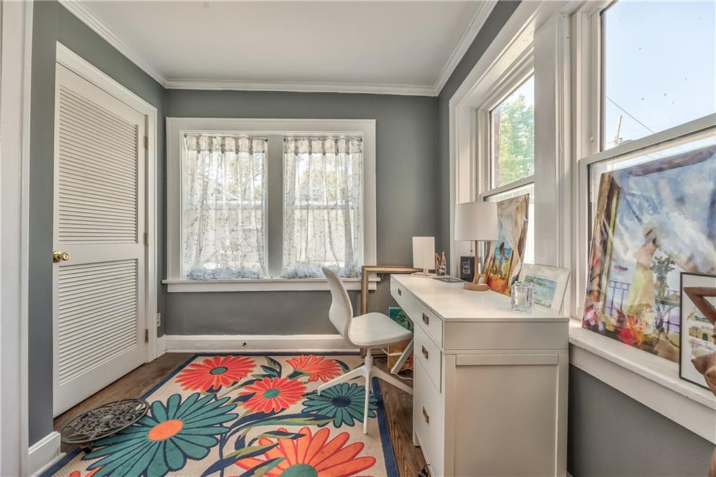 Historic charm meets modern living in this Southmoreland neighborhood - beautifully preserved & updated 2 bedroom, 1 bath condo with bonus office/den. Located just blocks from the Country Club Plaza, Westport, Nelson-Atkins Museum, KC Art Institute, & two blocks from the streetcar. It is ideal for walkable city living among historic stately homes. Some of the features include oak hardwood floors, crown molding, high ceilings & abundant natural light. The generous living room opens to a covered balcony. The spacious formal dining room is perfect for entertaining or flexible use. There are two generous bedrooms, a full bath & a bright bonus sun room flooded with natural light, ideal as an office, den, or dressing room . Don't miss the private one car garage and secure front/rear building access. Gallery Condominiums is a pet-friendly community of 46 homes spread across eight historic buildings. Enjoy historic charm, modern amenities & an unbeatable walkable location in this spectacular condo.