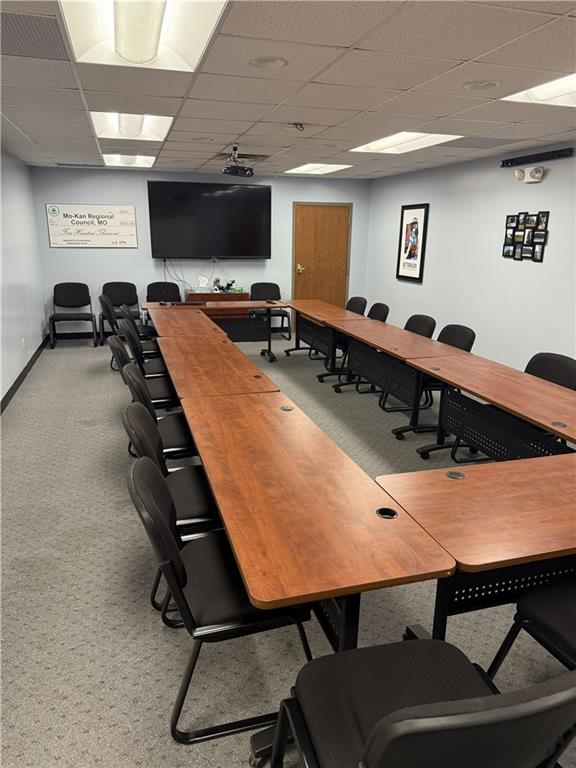 Excellent opportunity to lease one or multiple private offices (up to five available) within the MoKan building. Each office is offered at $130 per month, providing an affordable and professional workspace. The lease includes access to 2 conference rooms, one large, one small. The property is prominently located on a high-visibility downtown corner lot, with convenient access to nearby businesses, restaurants, and amenities.