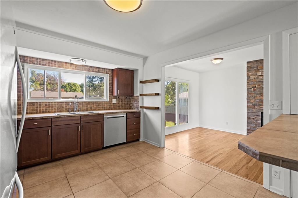 Welcome home to this adorable ranch in Milburn Fields, just across from Milburn Country Club! This home checks all the boxes — curb appeal with fresh landscaping, a spacious kitchen with a cute eat-in bar, next to a dining/sitting area with a cozy fireplace, and large living room with great natural light creates the perfect space to unwind or entertain. Walk out to a deck with built in seating perfect for hosting a barbeque under the string lights! Let the dogs roam free in the huge fenced backyard that includes a separate shed for storing lawn equipment. The basement includes its own separate suite with a living area, kitchenette, and separate full bath - this room could be a great extra hangout space, spot for a roommate, or even could use as a short to mid-term rental (current owner was able to rent for as much as $1200/month!). Great location with easy highway access and close to all the dining, shopping, and nightlife in Downtown Overland Park and Downtown Mission. This home is move-in ready and offers the perfect blend of charm and convenience — ready for you to settle in and start enjoying!