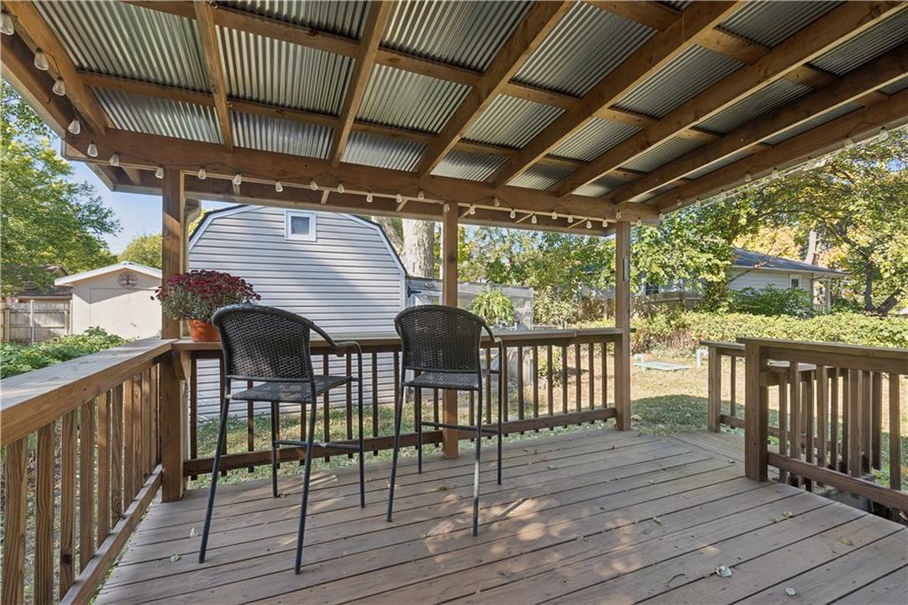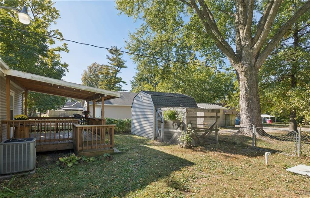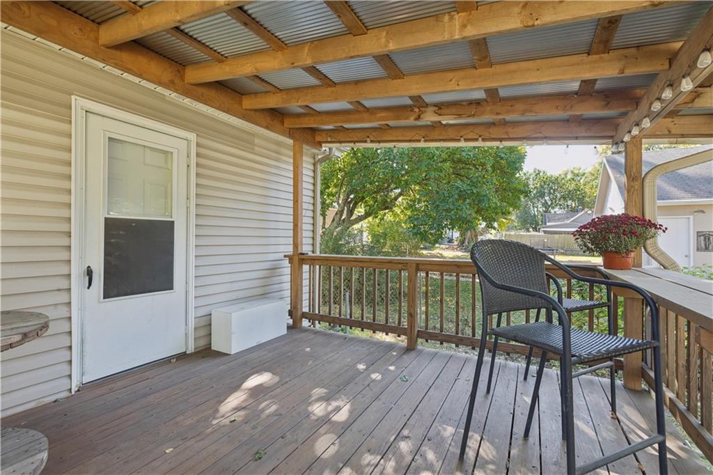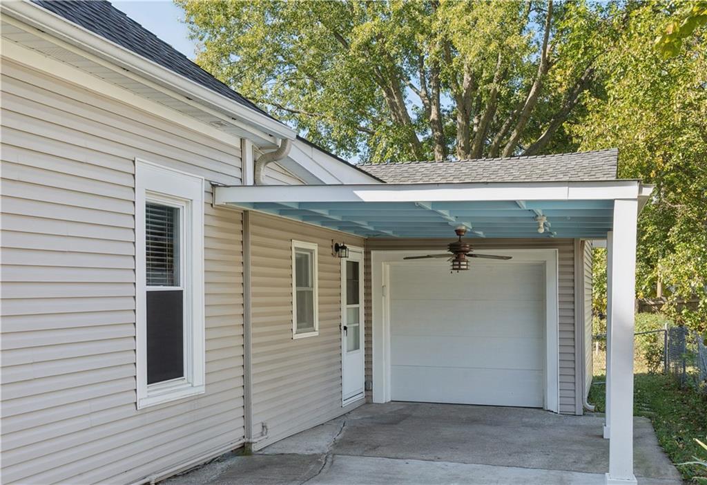 ***Offer deadline set for 10/25 at 6:00pm. Charming updated 3-bedroom, 2-bath bungalow combines vintage charm with modern convenience in a prime location just blocks from the Liberty Historic Square and William Jewell College. Step inside to find beautifully maintained living spaces with newer flooring, updated electrical and plumbing, a newly added bathroom featuring a gorgeous clawfoot tub, penny tile, Bluetooth lighting, and full sized stackable washer/dryer staying with home. The kitchen includes a stainless refrigerator that stays too. Major updates within the past decade include solar panels to reduce utility costs, sewer line with dual cleanouts, roof (50-year roof), garage door, siding, windows, and blinds. Enjoy evenings on the private covered deck overlooking a deep lot with large outbuilding offering bonus storage, workshop space, and even an attached chicken coop! The backyard also includes a storm shelter for peace of mind. Parking is plentiful with a one-car garage, covered carport, and long driveway. Located in the highly rated Liberty School District and close to shopping, dining, Scottsdale Park, and Martha Lafite Thompson Nature Sanctuary—this home offers character, convenience, and comfort in one great package!