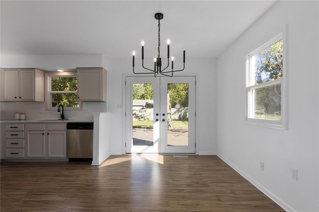 Welcome to this charming 4-bedroom, 2-bathroom home nestled in the heart of Blue Springs—just minutes from top-rated schools, scenic parks, and quick highway access! Step inside to discover a fully remodeled interior featuring a stunning updated kitchen with stainless steel appliances, modern light fixtures, fresh paint, and stylish new flooring throughout. Both bathrooms have been beautifully refreshed with contemporary finishes, giving the entire home a clean and inviting feel. Enjoy your morning coffee or evening gatherings on the oversized deck in the spacious, fenced backyard surrounded by mature trees, offering privacy and a touch of nature right at home. With its modern updates, newer AC, energy efficient windows, unbeatable location, and move-in ready condition, this home truly has it all!