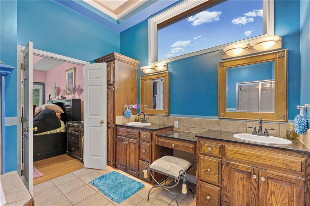 Step into sophistication with this beautifully updated family home in the highly sought-after Park Hill School District. Every detail has been thoughtfully designed for comfort, style, and entertaining — from the light-filled living spaces to the stunningly remodeled lower level. The main floor showcases rich hardwood flooring, expansive windows, and multiple living areas designed for both relaxation and entertaining. Enjoy a formal dining room with custom built-ins, a formal living area with a two-sided gas fireplace anchored with a custom server, a hearth room, and a chef’s kitchen that blends functionality with style. The kitchen boasts a farmhouse sink, gas cooktop, double ovens, over/under cabinet lighting, custom cabinetry with new hardware, and a walk-in pantry. A large island and eat-in area provide the perfect space for casual gatherings. Conveniently located nearby are a half bath and laundry/mudroom, with access to a covered deck for outdoor dining. The primary suite is a true retreat, featuring hardwood floors, abundant light, tray ceiling lighting, a cozy gas fireplace also facing the spa tub inside the spa like ensuite, and a massive walk-in closet — part of which has been thoughtfully converted into a private home office accessible from the main hallway. Completely renovated within the last 3 years, the spacious walk-out basement impresses with newer LVT flooring, a bright and expansive family room, and a custom entertainer’s bar. The bar area features painted cabinetry, butcher block counters, an ice well, oversized sink, refrigerator, and generous serving space — perfect for hosting friends and family. The lower level also includes two bedrooms, a fully updated bathroom with walk-in shower and modern vanities, and a 4th non-conforming bedroom ideal for a home office or creative studio. Step outside to a fenced backyard — the perfect canvas for a future pool, extended patio or lush landscape design.