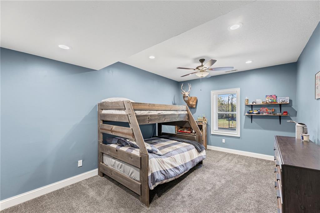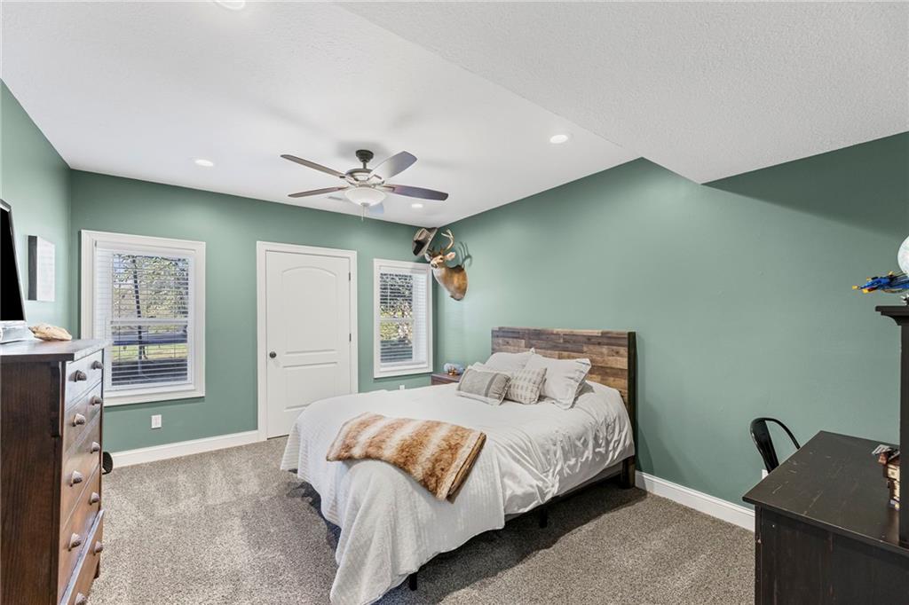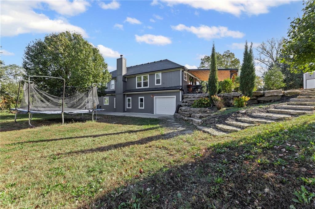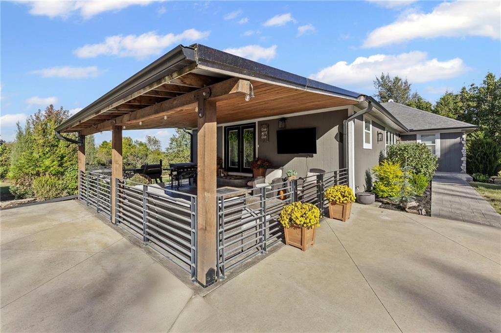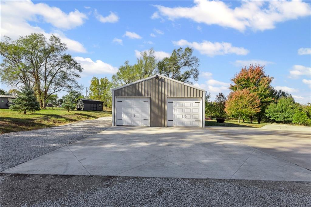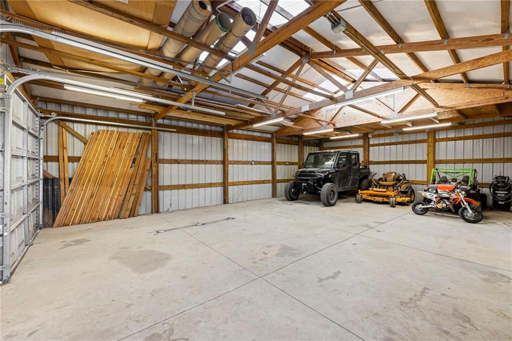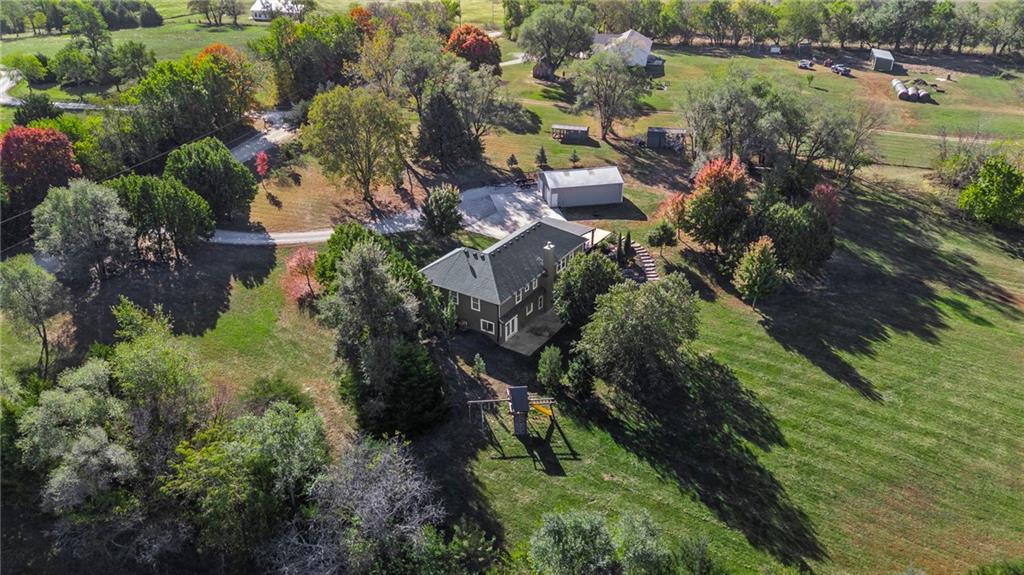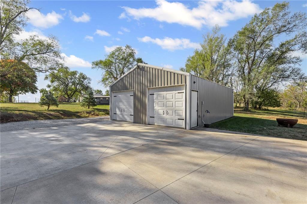 This exceptional property is a true country lover's dream, offering a stunning 5 bedroom, 3½ bathroom ranch home nestled on approximately 20 +/- acres of picturesque land, perfectly blending rustic appeal with modern comfort. The interior features a spacious, open-concept living area ideal for both relaxing and hosting, anchored by a chef's kitchen boasting ample cabinetry, granite countertops, a breakfast bar, and stainless-steel appliances, which flows seamlessly into the dining room. A warm stone wood-burning fireplace highlights the cozy great room. The main level includes a generous primary suite with a walk-in closet, double vanities, and a tiled bathroom, alongside two more bedrooms and a full bath. Adding incredible versatility, the finished walk-out lower level features a huge family room with an impressive wet bar, two additional spacious bedrooms, a second laundry room, and a workout room that could easily revert to a third-car garage space. Basement has safe and sound insulation for sound proofing. Outside, enjoy glorious sunrises and rolling views from the lovely covered patio, overlooking timber, a pond for fishing, and abundant wildlife, including deer and turkey. 1 car attached garage and 2 detached spaces in the valuable 24x36 outbuilding with a concrete floor and electricity completes this magnificent setting. Close to Hillsdale Lake, with riding trails, boating, fishing, and camping!