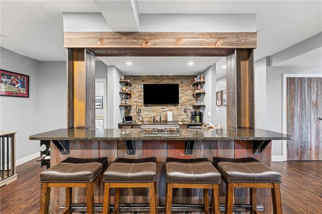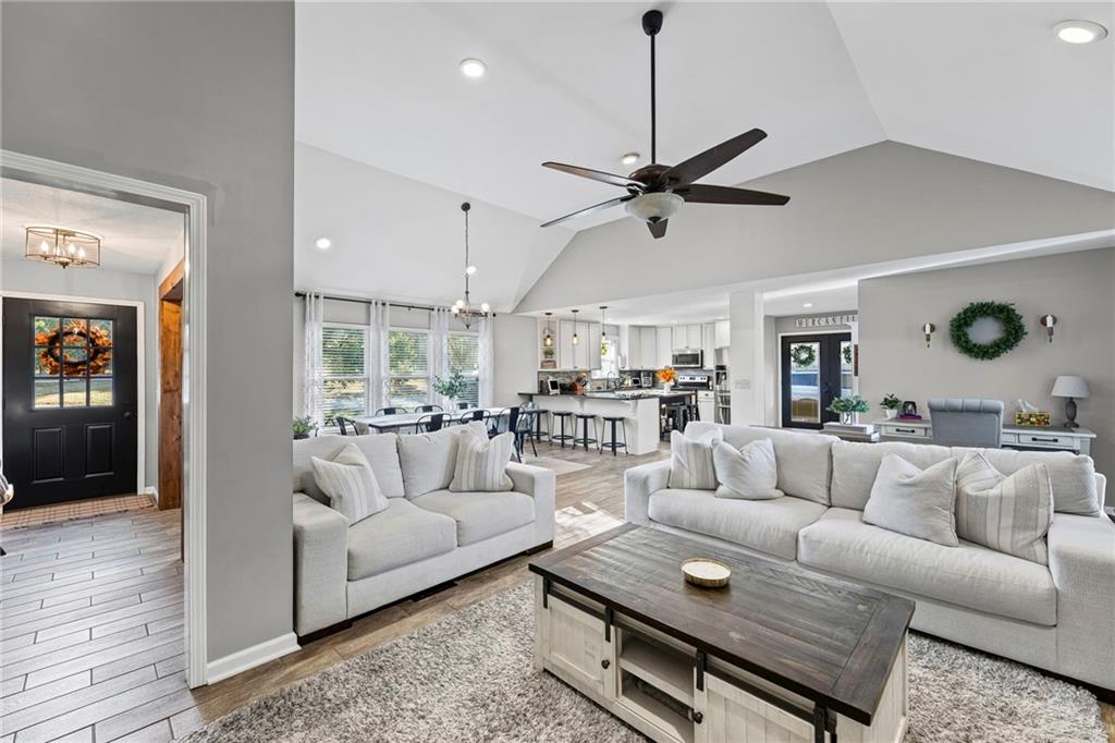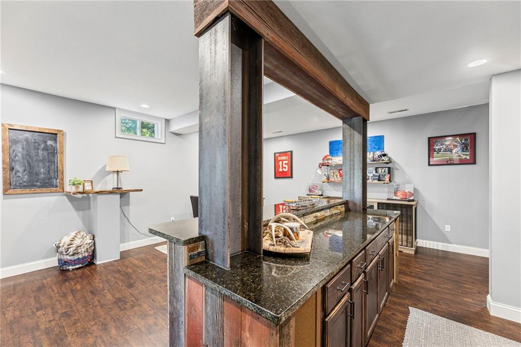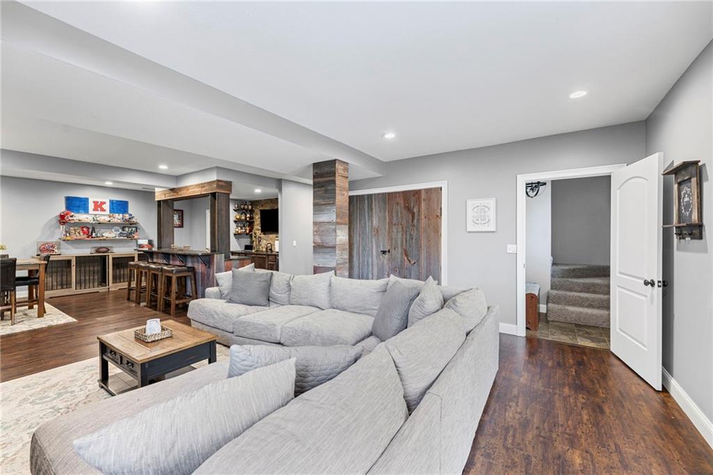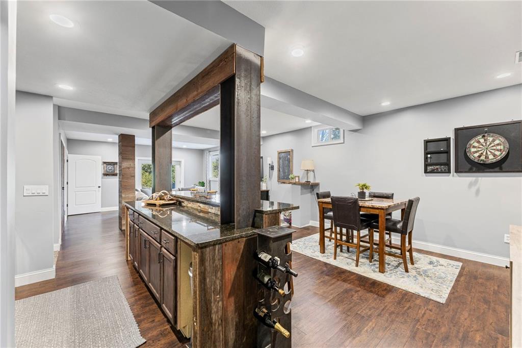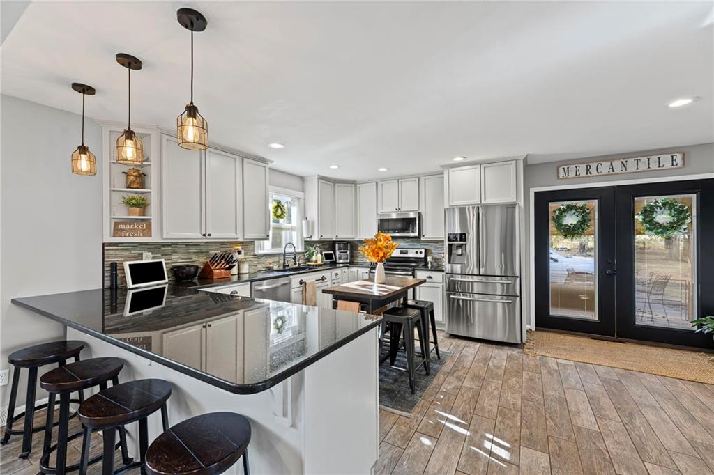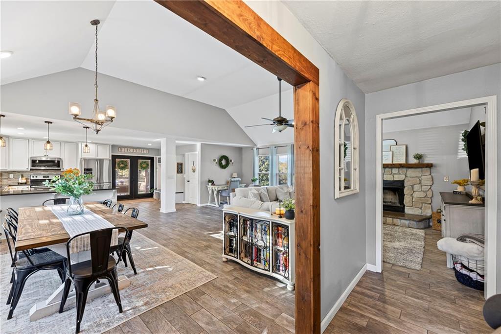 This exceptional property is a true country lover's dream, offering a stunning 5 bedroom, 3½ bathroom ranch home nestled on approximately 20 +/- acres of picturesque land, perfectly blending rustic appeal with modern comfort. The interior features a spacious, open-concept living area ideal for both relaxing and hosting, anchored by a chef's kitchen boasting ample cabinetry, granite countertops, a breakfast bar, and stainless-steel appliances, which flows seamlessly into the dining room. A warm stone wood-burning fireplace highlights the cozy great room. The main level includes a generous primary suite with a walk-in closet, double vanities, and a tiled bathroom, alongside two more bedrooms and a full bath. Adding incredible versatility, the finished walk-out lower level features a huge family room with an impressive wet bar, two additional spacious bedrooms, a second laundry room, and a workout room that could easily revert to a third-car garage space. Basement has safe and sound insulation for sound proofing. Outside, enjoy glorious sunrises and rolling views from the lovely covered patio, overlooking timber, a pond for fishing, and abundant wildlife, including deer and turkey. 1 car attached garage and 2 detached spaces in the valuable 24x36 outbuilding with a concrete floor and electricity completes this magnificent setting. Close to Hillsdale Lake, with riding trails, boating, fishing, and camping!