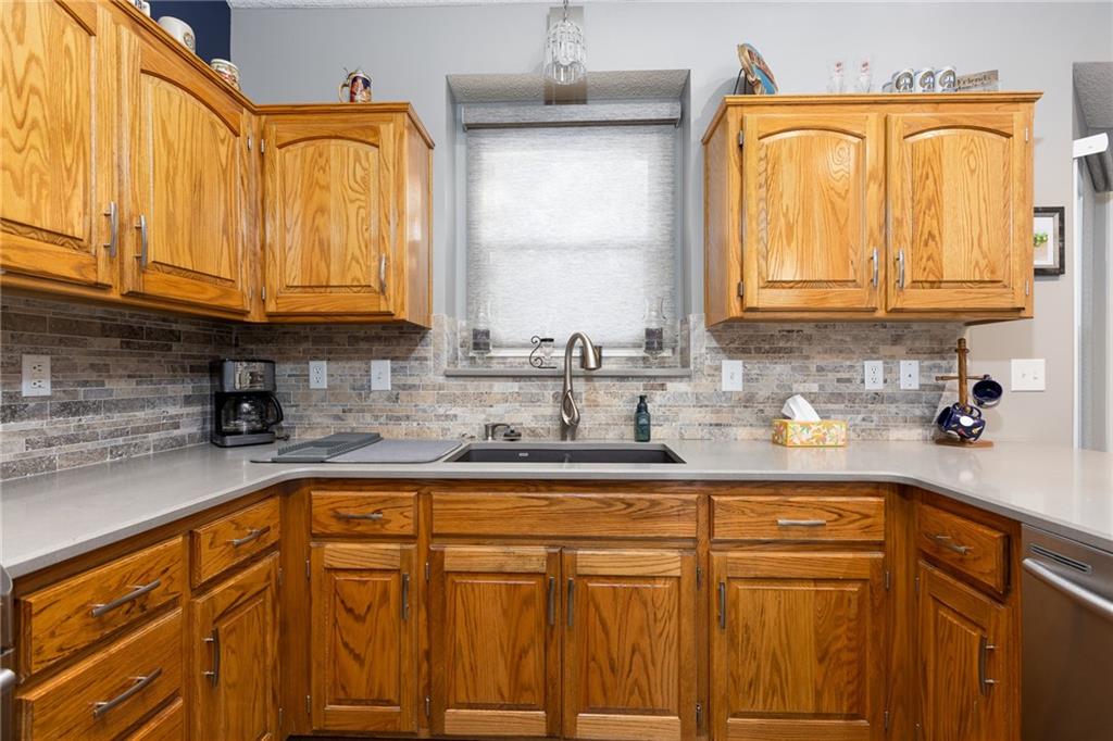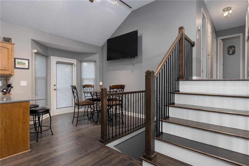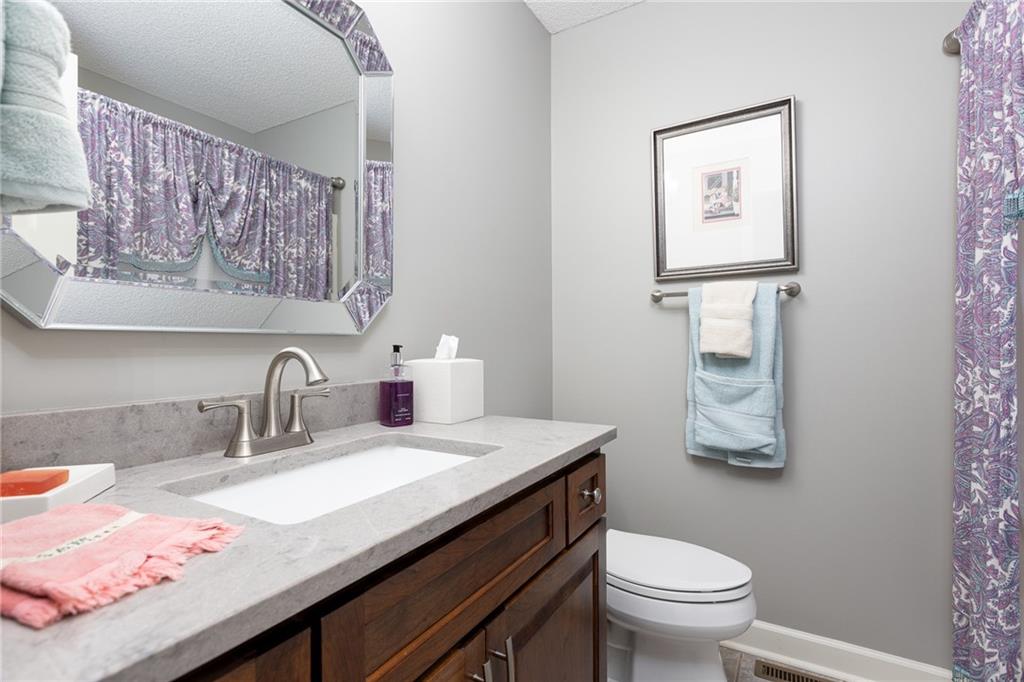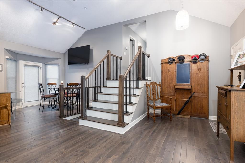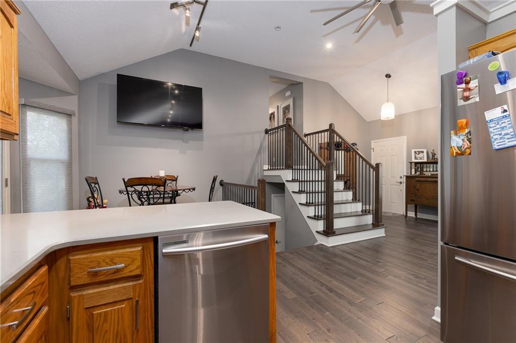 Beautiful updated home- Features include wood floors, granite countertops, backsplash, and tile in all bathrooms. The remodeled kitchen offers modern finishes and plenty of storage. Enjoy cozy evenings by the fireplace in the Rec room or relax in the finished walkout basement. Exterior highlights include durable vinyl siding, a newer roof, and a tree-lined yard providing privacy and charm.