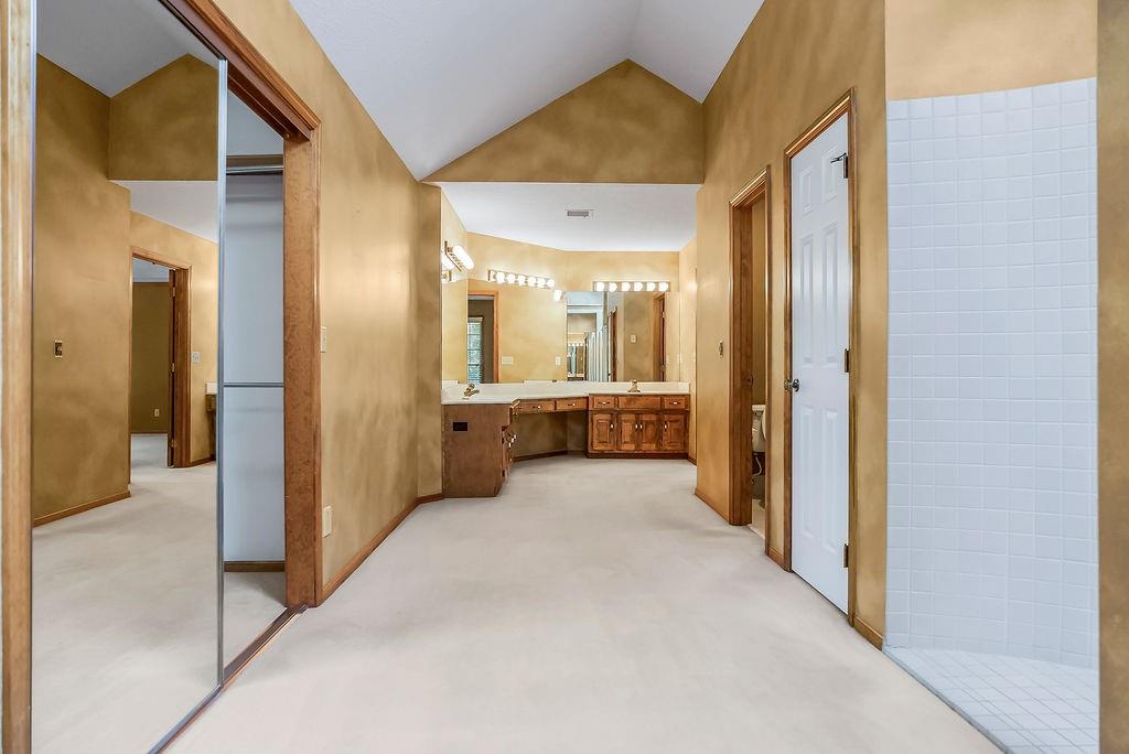 Welcome to a super special property in Blue Valley Schools — a lovingly maintained home surrounded by nature and privacy. The main lot is just over 18,000 sq ft, and it comes with two additional parcels, giving you extra space. Step out back and relax on the screened-in deck, the perfect spot for morning coffee, summer dinners, or watching the sunset over your spacious backyard. This home has a number of thoughtful updates: NEW furnace, NEW AC, NEW water heater, and NEW exterior paint — all the big stuff is done, so you can move in and enjoy. Each bedroom has its own bathroom (including a Jack and Jill), and every room feels spacious with large closets and natural light. The primary suite features a large bathroom plus an amazing walk-in closet. The main floor offers an open and comfortable flow — a family room with fireplace and built-ins, kitchen with deck access, and convenient laundry right off the hearth room. The walkout lower level adds even more living space with a finished family area, private office, full bath, and a large workshop/storage area. With a three-car garage, oversized driveway, and room to breathe both inside and out, this home has been carefully cared for by its original owners and it shows in every detail. Come see why this special property feels more like a retreat than just a home!