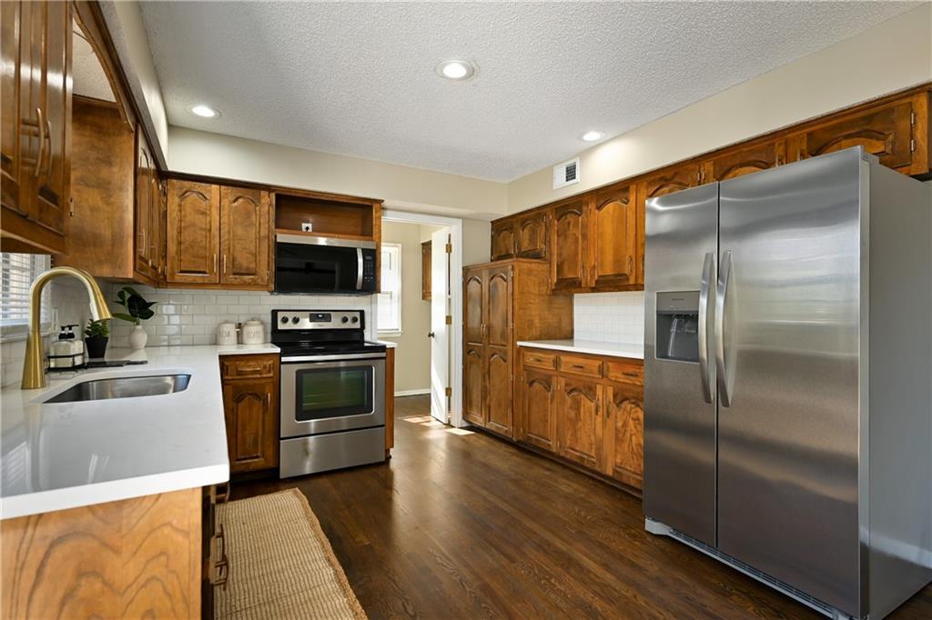 Spacious Brick Ranch in the Heart of Hanover South! Welcome to this stunning 6-bedroom, 4.5-bathroom brick ranch nestled on an estate-size corner lot in the highly sought-after Hanover South subdivision of Overland Park. This beautifully updated home offers true main-floor living with an open and inviting floor plan perfect for entertaining and everyday comfort. The main level features a large primary suite with a private bath, two additional spacious bedrooms, and another full bathroom. Enjoy cooking in the updated kitchen with modern finishes, and relax in the expansive living area with fresh interior paint and new flooring throughout. Convenient main-floor laundry adds everyday ease. The finished walkout basement is an entertainer’s dream—complete with a large family room, cozy fireplace, new flooring, two non-conforming bedrooms, and a full bath, providing the perfect setup for guests, office space, or hobbies. This property combines space, style, and functionality in one of Overland Park’s most coveted neighborhoods. Don’t miss your chance to call this incredible home yours—schedule your private tour today!