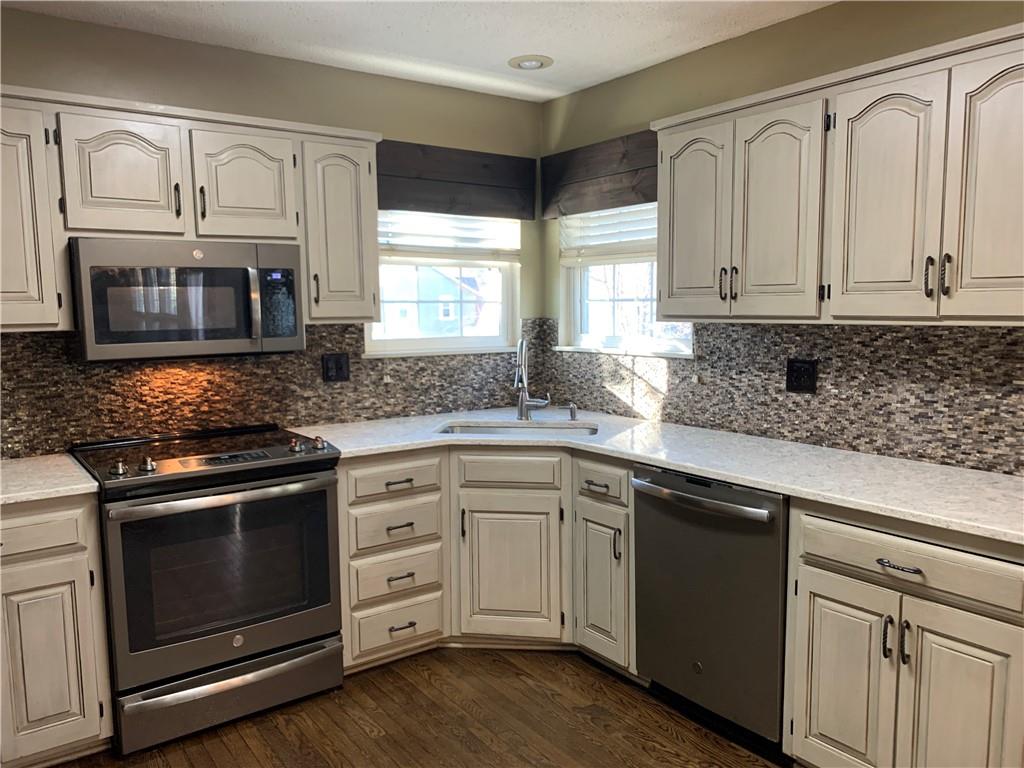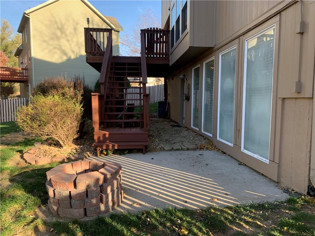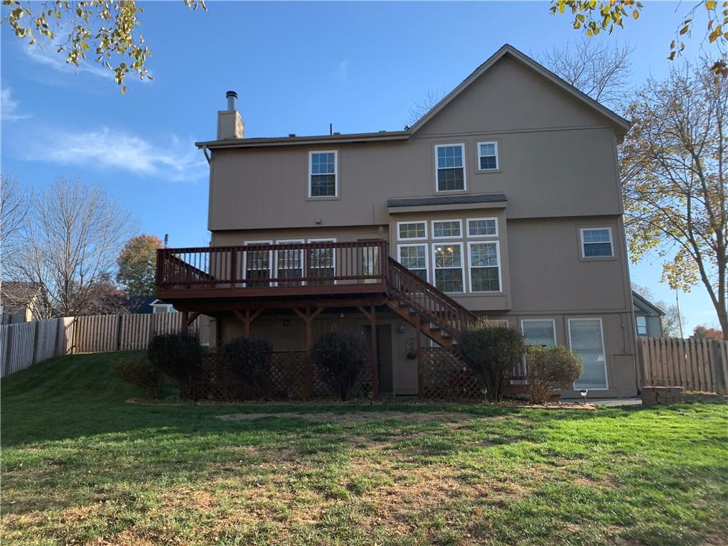 This beautifully maintained 4-bedroom, 3 1/2-bathroom home is situated on a spacious corner lot with a 2-car garage and additional driveway pad for extra parking. The updated kitchen features modern cabinetry, quartz countertops, a stylish tile backsplash, and stainless steel appliances, making it perfect for both everyday meals and entertaining. The kitchen opens into the inviting family room, which includes a gas fireplace and built-in shelving. The main floor also offers a versatile bonus room that can serve as a home office, den, or playroom. Upstairs, the generous primary suite boasts an updated en-suite bath with double vanities, vinyl plank flooring, and a walk-in closet. Conveniently located on the bedroom level, the laundry room makes chores a breeze, and the bonus attic storage adds extra space for your belongings. The finished lower level offers additional living space, featuring new carpet, a wet bar, and a second family room. There’s also room for a 5th non-conforming bedroom with a full bathroom in place, offering great potential for guests or multi-generational living. Step out from the lower level to a patio and enjoy the large, fenced backyard—perfect for pets and children. Other highlights include fresh interior and exterior paint, upgraded siding, newer HVAC and hot water heater, and a bonus shed that blends with the home for extra storage. Located near Zona Rosa, excellent schools, and with easy highway access, this home offers great convenience for shopping, dining, and commuting. Move-in ready and priced to sell—schedule your showing today!