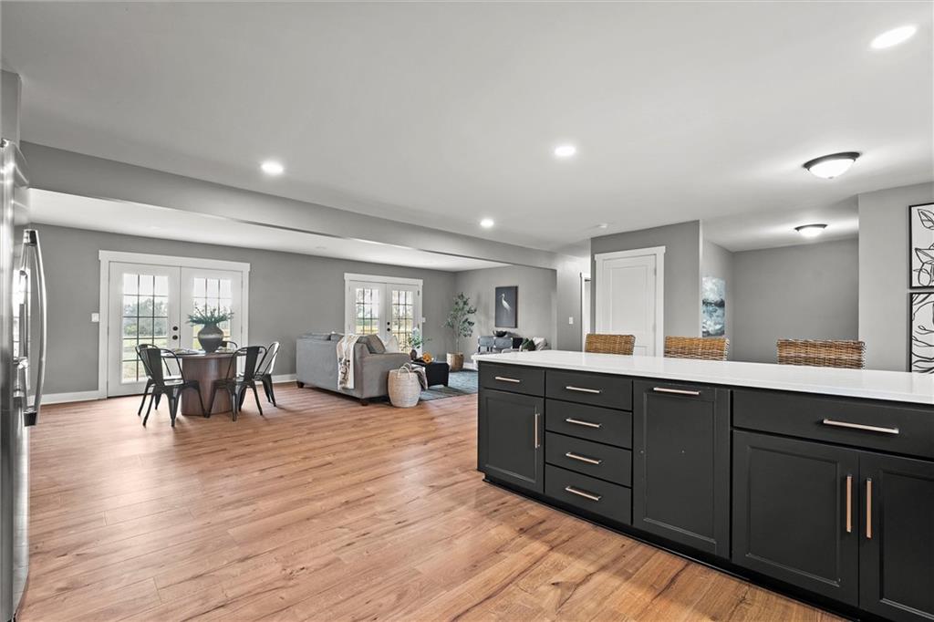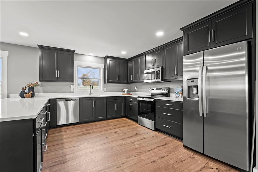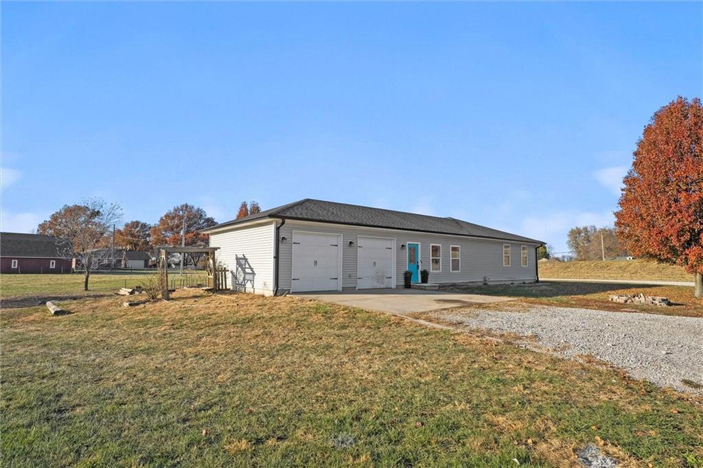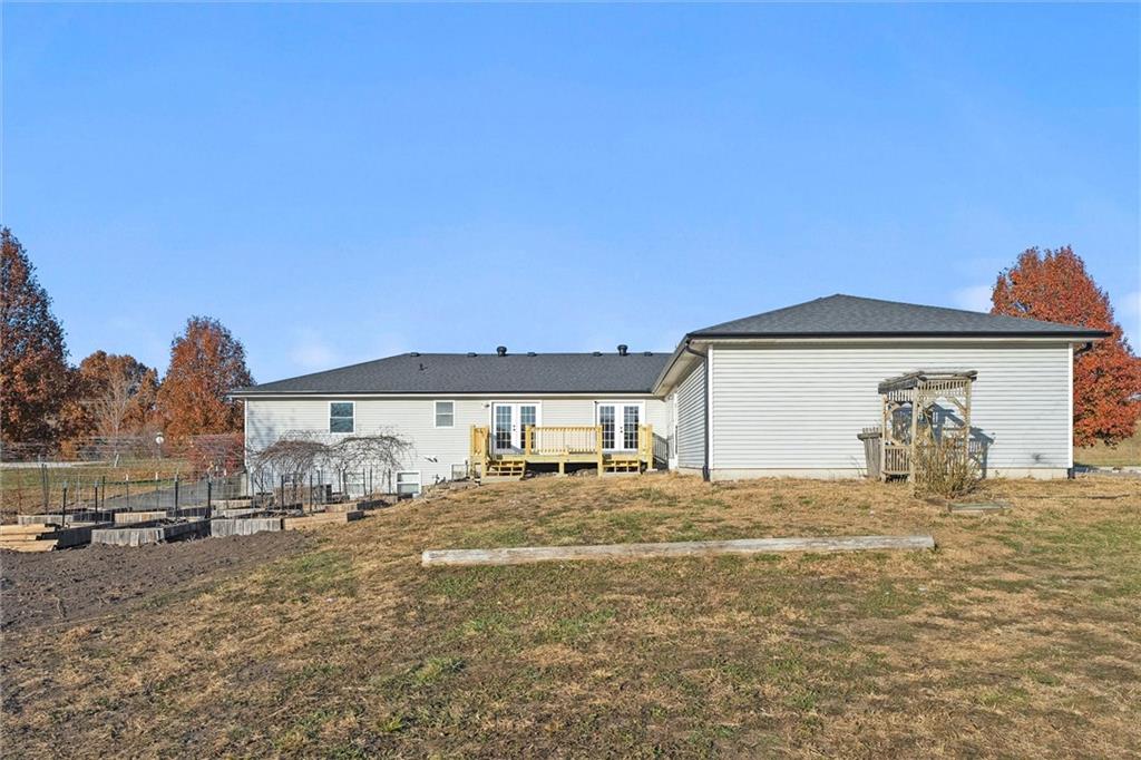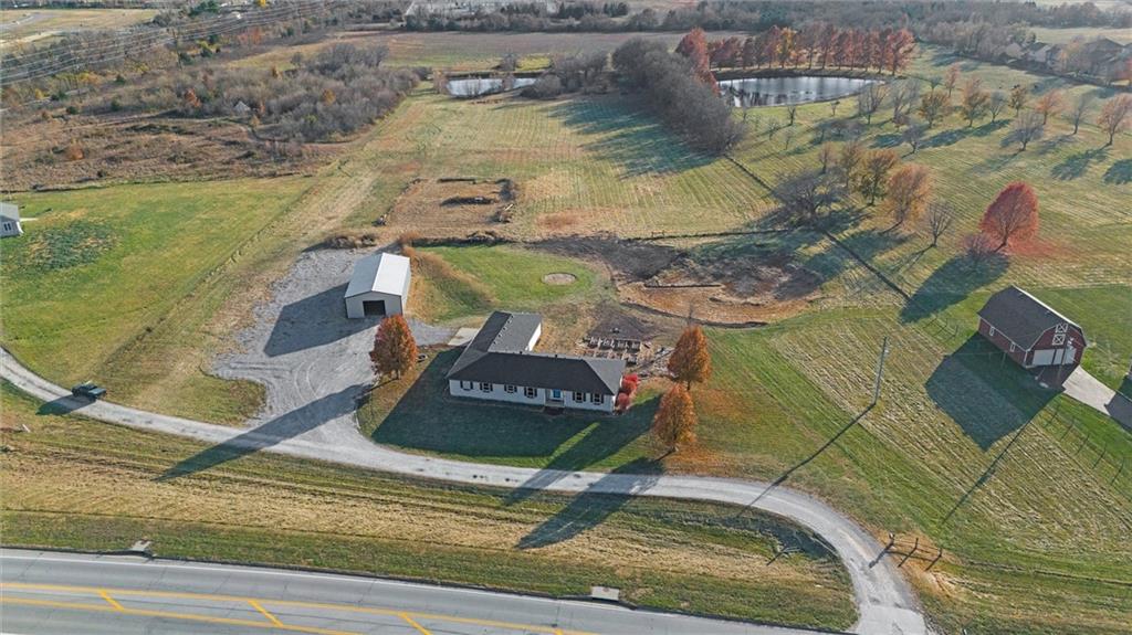 This Beautifully Remodeled stick built 3000+ sq foot Ranch Home, a 30 X 60 shop, a Stocked Pond, and 10+ Acres in JOHNSON COUNTY all could be yours!! This location has it all. This country home offers the perfect blend of peaceful scenic living with the convenience of nearby city amenities. All new flooring, the new soft close cabinets throughout the entire home and the spa like primary bath! All new one year SS appliances and composite roof! Welcoming and warm this home has three additional oversized secondary bedrooms for your growing family. A brand new deck overlooks your open spaces. Sunroom for growing seedlings during cooler months and a full raised garden area just out your back doors! The shop has new 6 inch concrete floors for heavy equipment, all new electricity and lights, and 2 new garage doors and openers. Sunroom and partially unfinished basement are ready for your finishing ideas! Basement has tall 10 foot walls. Come play outside!! Bring your horses! Pond stocked for fishing! Close to 169 highway and convenient for 69 as well. Be sure and watch the video!