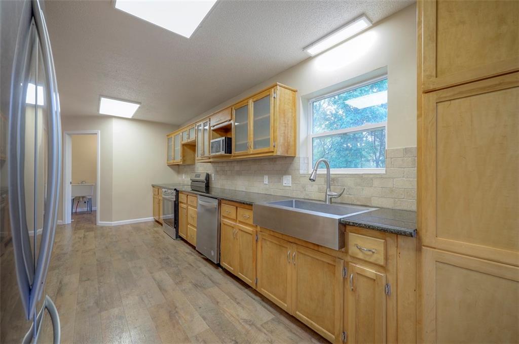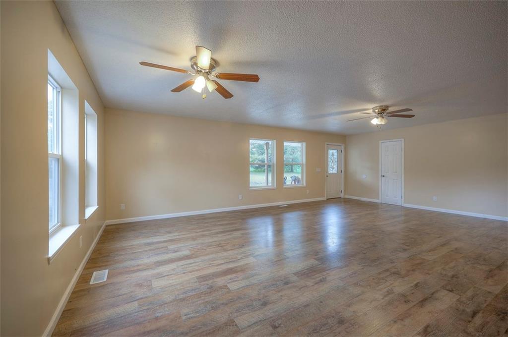 Get ready to RELAX in your new country retreat!! This 4BR/2BA ranch home is ready for move-in!! Inviting front PORCH leads you into a SPACIOUS open floor plan with large living room, dining area and kitchen. Living room space allows for multiple seating areas to maximize comfort and functionality. Large dining area is perfect for weekday family dinners or big holiday get togethers! Galley-style kitchen has plenty of storage and counter space along with STAINLESS STEEL appliances. Huge WALK-IN pantry and convenient laundry room off kitchen are a bonus. SPACIOUS master with WALK-IN closet and ENSUITE bathroom along with three generously sized secondary bedrooms and full hall bathroom complete this home. The 30x60 Garage/Shop is ready to house all your outdoor toys and equipment or be the perfect spot to work on your next project. ENJOY all this property has to offer!! Beautiful mature trees surround the property and provide privacy. The pond/creek is easily accessible and big enough to throw kayaks or a canoe in and paddle. For the gardener and green thumb there are established fruit trees, plenty of space to garden and landscaped flowers that will bloom all through the different seasons. LOCATION close to Smithville Lake and easy access to Hwy 169. Don’t miss this opportunity and schedule your tour today!!