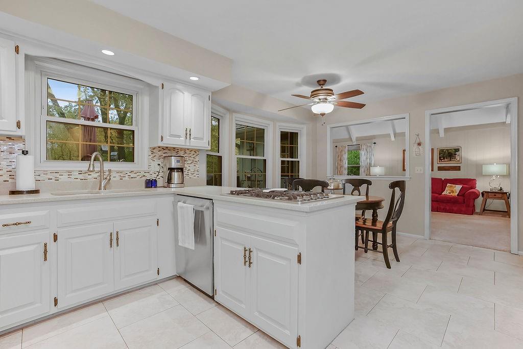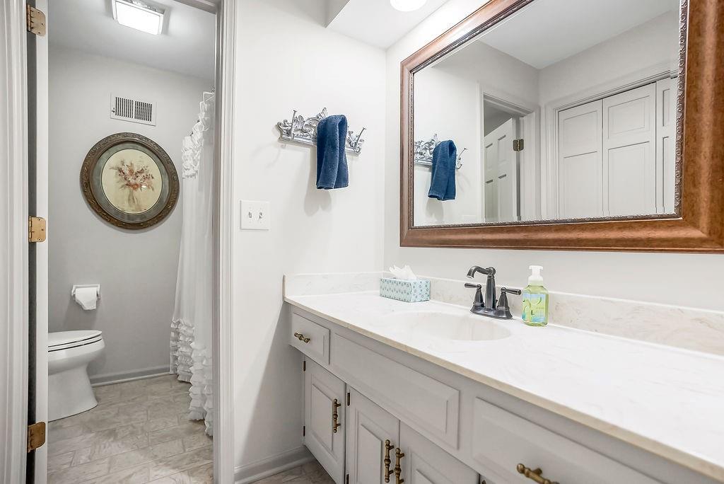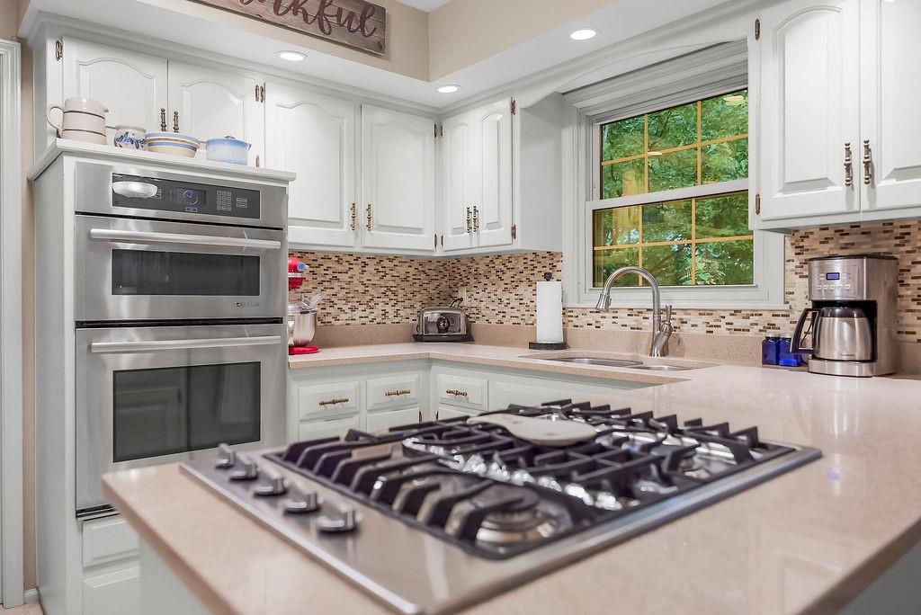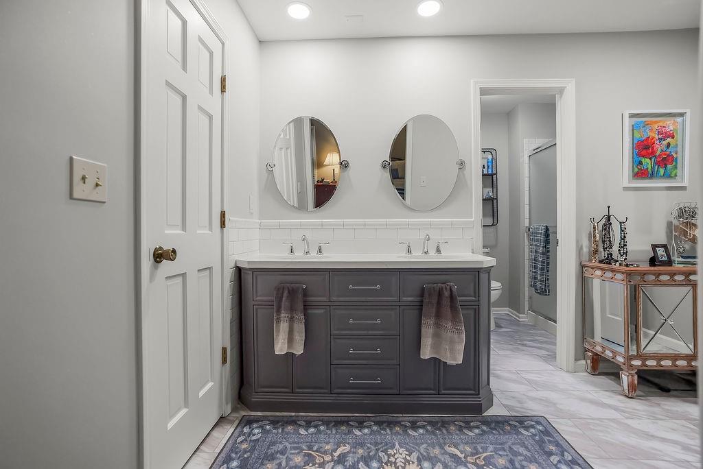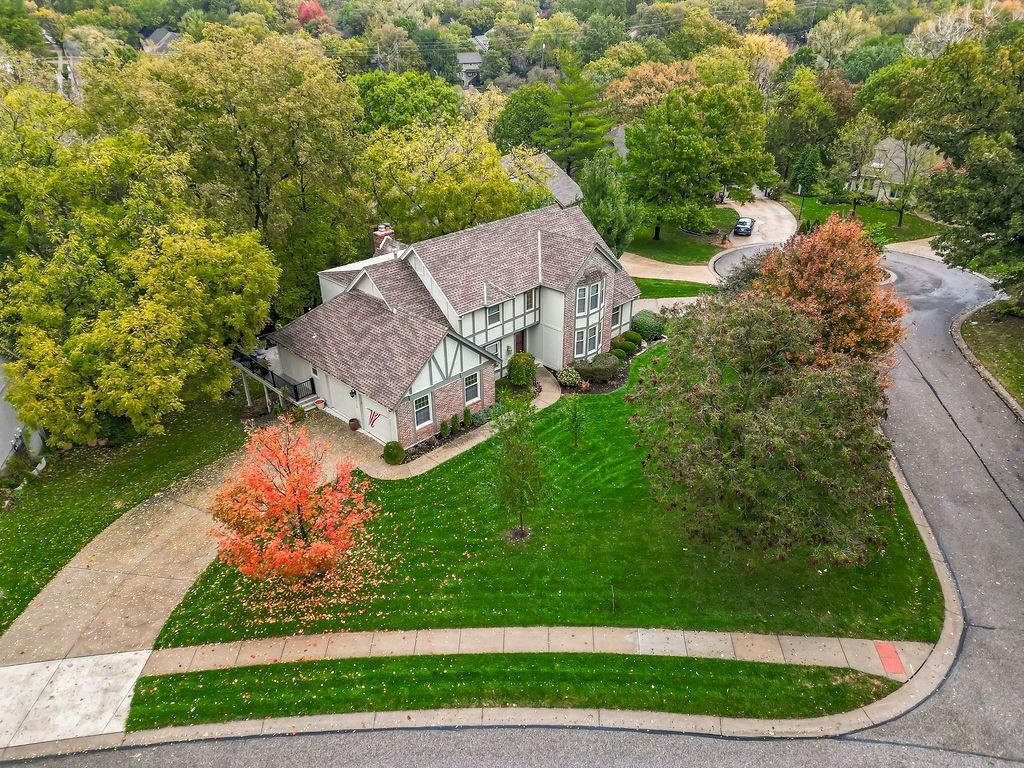 STUNNING! This large Tudor style home is nestled in the trees on a large corner lot in popular Lenexa. Boys with their toys will love the 4 car garages - 2 on the side and 2 in the basement. FIVE bedrooms, Four full baths and two half baths. Large master suite on main floor and also 2nd bedroom, 2nd bath and half bath on main floor. Finished walk-out basement and yet tons of storage!