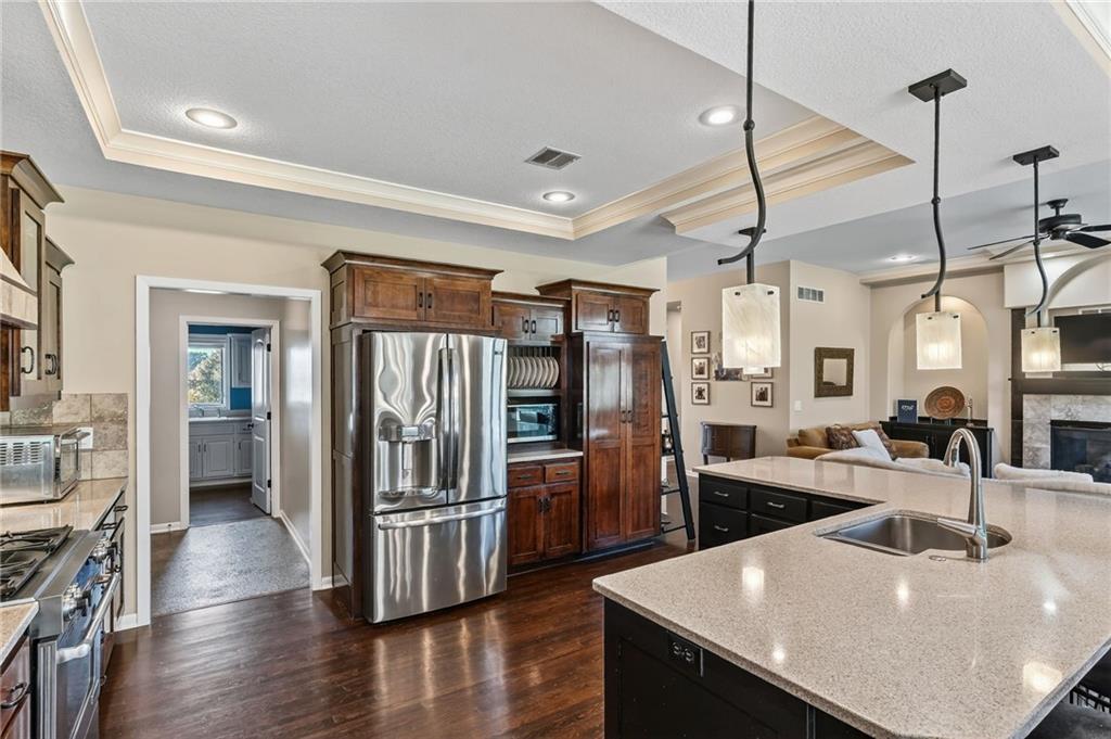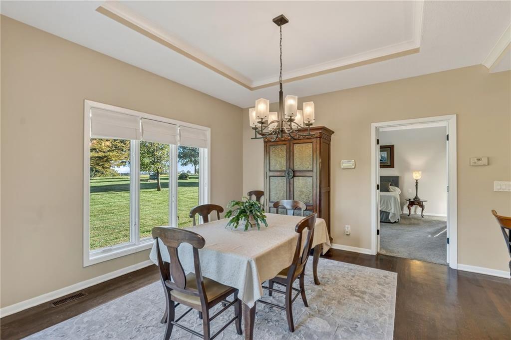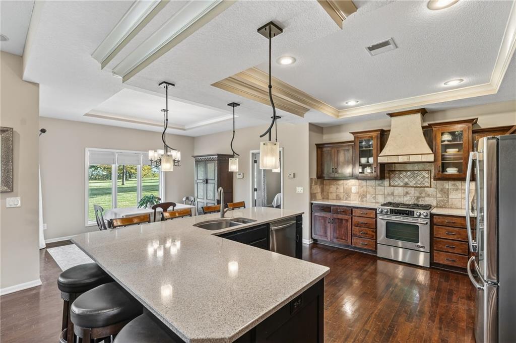 Want the serenity of acreage living—without the endless upkeep? Welcome home. This custom-built masterpiece sits gracefully on a half-acre, surrounded by open fields that stretch endlessly in front and behind, offering uninterrupted views of both sunrise and sunset. Every window frames a moment of beauty, every detail whispers sophistication. Step inside to an expansive open floor plan where sunlight dances across hardwoods and architectural details—arched entries, trayed ceilings, and a custom fireplace that anchors the heart of the home. The chef’s kitchen is nothing short of spectacular: a massive island with seating for seven or more, top-of-the-line gas range and hood, abundant custom cabinetry, and endless counter space that invites gathering, creating, and connection. On the main level, discover three spacious bedrooms, a dedicated office, and the convenience of main-floor laundry. The primary suite feels like a private retreat—complete with a spa-inspired bath featuring a sliding barn door, jetted tub, dual shower heads, double sinks, and an enviable walk-in closet. Two additional bedrooms share a beautifully appointed Jack-and-Jill bath, each with its own walk-in closet. Downstairs, the possibilities expand. A large finished basement with tall ceilings offers a true fourth bedroom, two non-conforming bedrooms, a theater room, and an expansive storage area with built-in shelving. Outside, a flat backyard blends seamlessly into open countryside—peaceful, private, and perfect for gatherings under the stars. The oversized three-car garage has been professionally finished to perfection, ready for cars, hobbies, or an extra workspace. With updated lighting, fresh paint throughout, and a newer roof, this home delivers the ideal blend of refined living and effortless country calm—where every day begins and ends with a view worth a million dollars. **Professional photos coming soon**