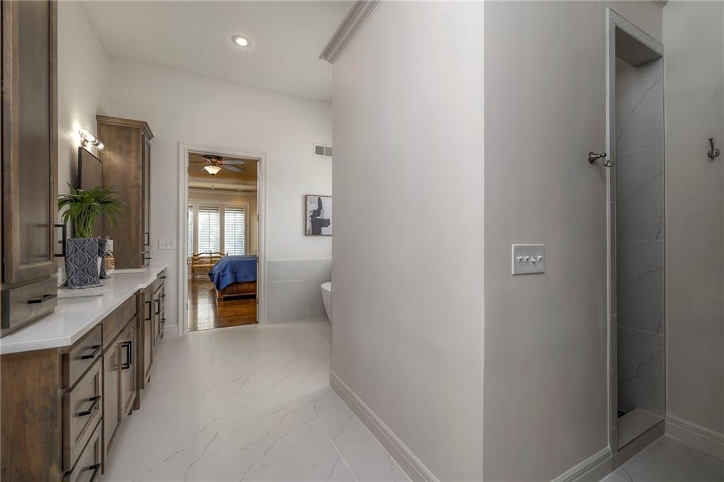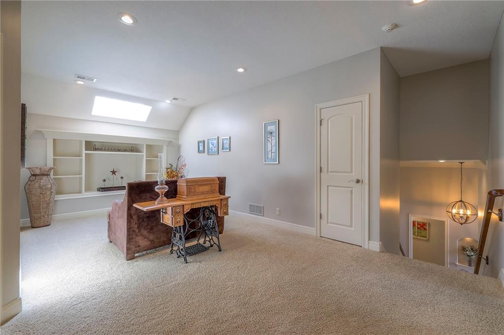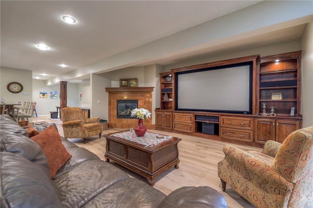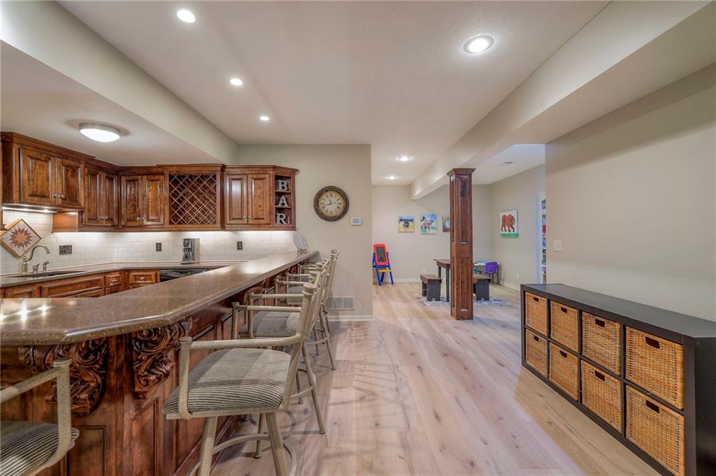 Welcome home to this stunning custom-built 1.5-story residence offering over 6,400 sq. ft. of beautifully designed living space in one of Overland Park’s most desirable neighborhoods. Step through the grand double-door entry into a welcoming foyer that sets the tone for what’s ahead. The oversized formal dining room is ideal for holiday gatherings and entertaining. The main-level living room impresses with its tall ceilings, elegant fireplace, built-in bookshelves, and incredible natural light—it’s a space you simply have to see in person. The gourmet kitchen is fabulous, featuring an oversized hearth room, a Wolf gas cooktop, a beverage fridge, a large kitchen island with seating, abundant cabinetry, and ample counter space—perfect for everyday living or hosting friends and family. The laundry room is conveniently located on the main level and offers plenty of extra space for functionality. The primary suite is a retreat of its own, complete with tray-vaulted ceilings, gorgeous hardwood floors, and a newly remodeled spa-like bathroom featuring a freestanding soaking tub, walk-in sauna, walk-in shower, and an expansive closet. Upstairs, you’ll find three spacious secondary bedrooms, each with fantastic closet space, plus a bonus loft area ideal for a reading nook, study space, or playroom. The finished lower level is an entertainer’s dream—boasting a large rec room with fireplace, second kitchen and bar area, room for a pool table, kids’ play area, and a dedicated exercise room. The home also features a suspended garage, providing an abundance of extra storage space, and the walk-up/walk-out design adds both light and convenience. Step outside to a fully fenced backyard featuring black metal fencing, a composite deck, and a large patio—the perfect setting for outdoor relaxation or entertaining. This home truly has it all—incredible design, comfort, and craftsmanship—and must be seen in person to be fully appreciated!