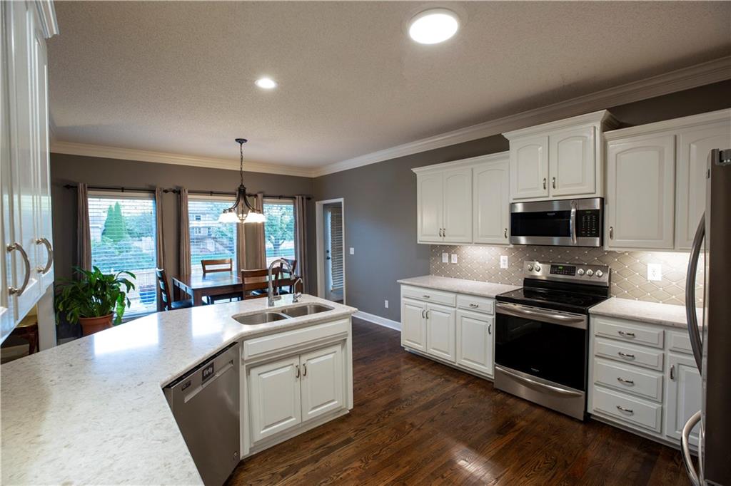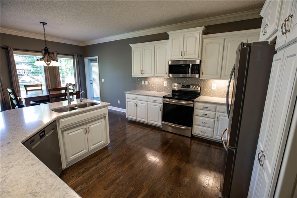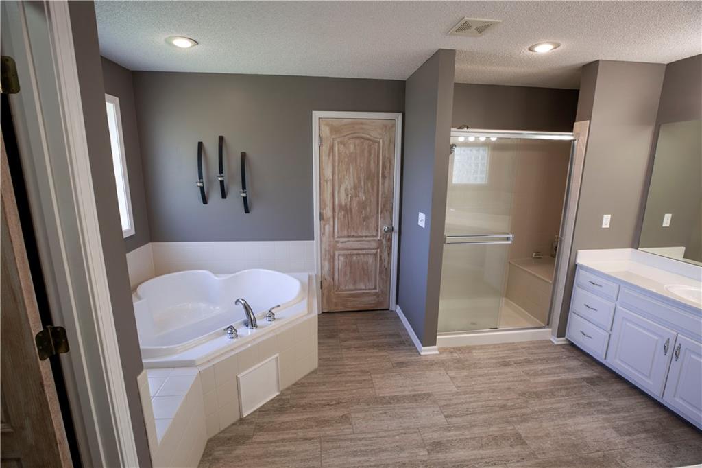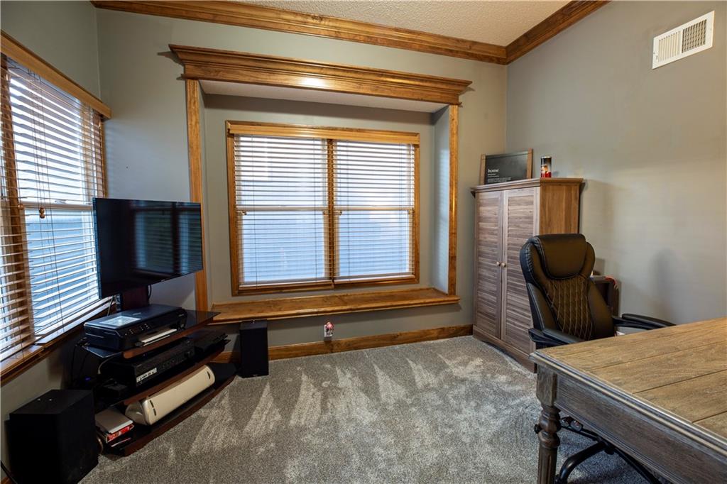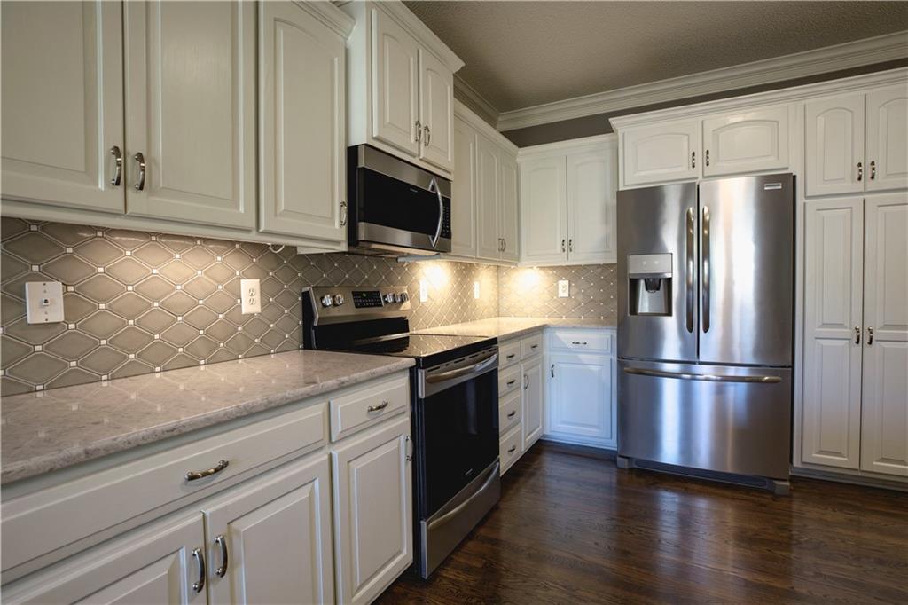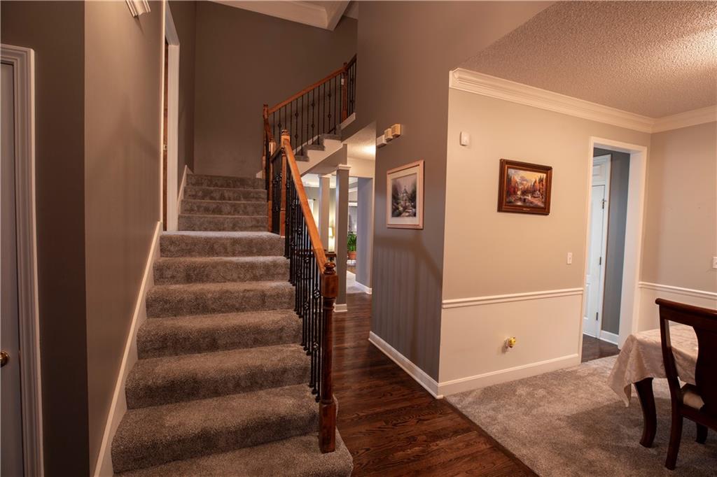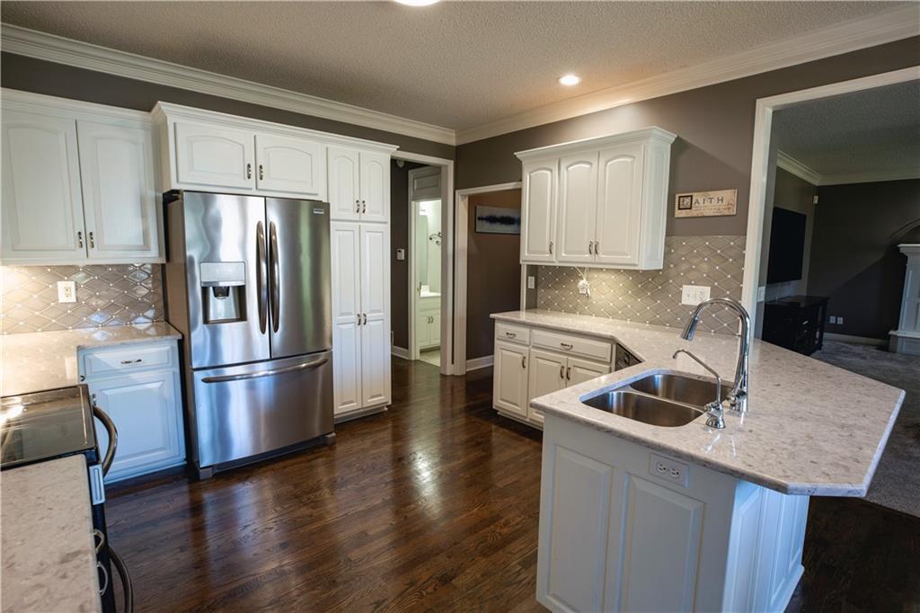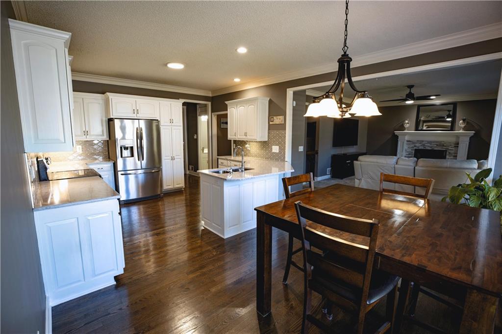 Get ready to fall in love—because this stunning 2-story, 5-bedroom, 4.5-bath beauty is ready to sweep you off your feet (and straight into its 3-car tandem garage). Step inside and you’ll immediately notice the brand-new plush carpeting on the main level living room, dining room and stairs—so soft you will want to sink your toes into just because you can. The formal dining room is perfect for hosting family dinners or pretending you host them (we won’t tell). The completely renovated kitchen is the star of the show with quartz countertops, sleek tile backsplash, stainless steel appliances, and enough space to make even takeout night feel fancy! Head upstairs and find the new wood flooring guiding you through the hallway to your primary suite oasis—complete with a corner tub, dual sinks, and a walk-in shower that basically says, “You deserve this.” The closets? Let’s just say your wardrobe will never complain again. Three more bedrooms upstairs mean everyone gets their own happy space—two share a Jack & Jill bath, and one lucky duck gets a private bath. Need a quiet space to work, scroll, or hide? The office halfway up the main stairs with glass doors has you covered with just enough privacy for those important calls, and just enough vision to make you feel at home in your home office! (see what I did there?) Downstairs, the partially finished basement includes a bedroom and full bath, with the bedroom doubling as a storm-safe room (because Kansas). The open layout is ready for your finishing touches—home theater, gym, or snack bar… we’re not judging. Outside, you’ll find a fenced yard perfect for pets, parties, or pretending to garden. The neighborhood pool and walking trails make it easy to live your best “weekend-vacation-vibes” life. This Palisades Park charmer checks every box—and adds a few you didn’t know you wanted.