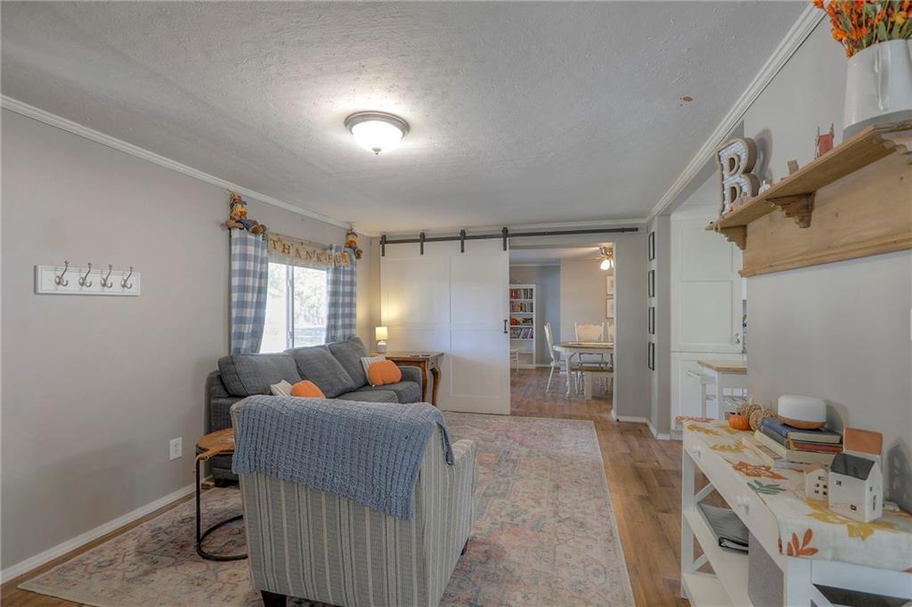 Experience the perfect blend of country tranquility and modern convenience with this beautifully renovated home. Situated on almost half an acre and backing to mature woods, this property offers both privacy and easy access to nearby amenities. This updated home backs to woods for added privacy. Step inside to find a bright, open floor plan featuring neutral décor and durable Luxury Vinyl Plank flooring throughout. The main level offers a spacious dining area and inviting living room, separated by a stylish barn door for added character. The updated kitchen has abundant white cabinetry, a pantry, and stainless steel appliances — perfect for everyday living or entertaining. Two bedrooms and two full baths are located on the main floor, while the upper-level bedroom can easily serve as a private primary suite complete with a walk-in closet. Enjoy outdoor living at its best — relax on the large covered front porch or host gatherings on the back patio, complete with a built-in stone gas fire pit and gas line ready for a grill or outdoor kitchen.