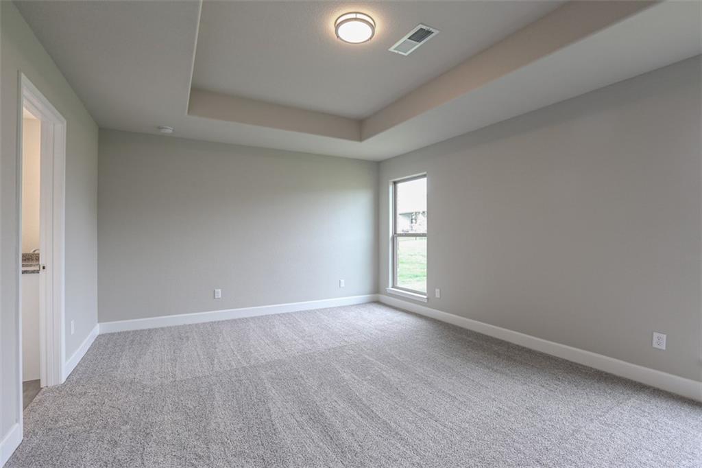 This traditional ranch-style home showcases a timeless exterior with cedar-accented details, stone accents, and a welcoming front tower. Inside, the open-concept layout connects the kitchen, dining, and living areas for seamless flow and comfort. The kitchen features a spacious center island, while the living area includes a cozy fireplace and direct access to a large back patio — perfect for entertaining or relaxing outdoors. Photos are a representation of the Christine floor plan. Selections may vary from this home, and plans are subject to minor changes.