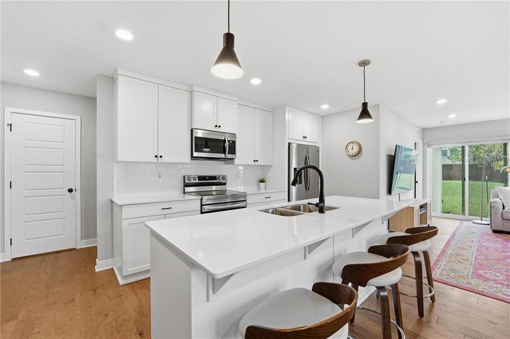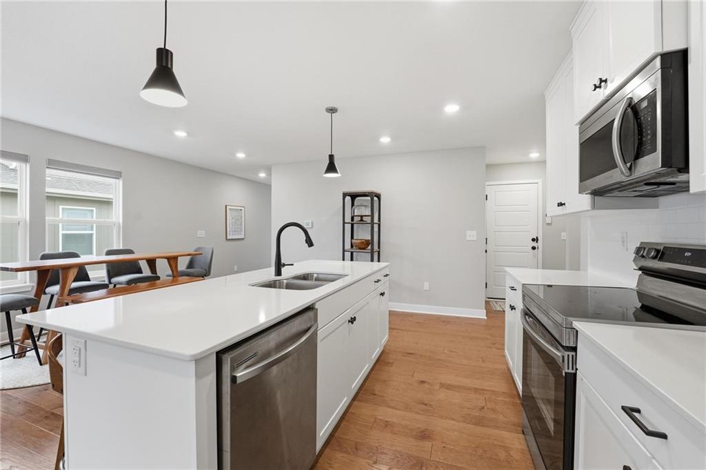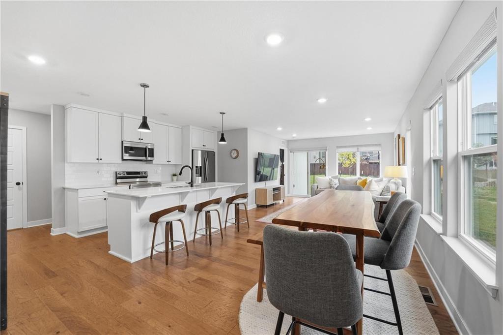Like new, but move in ready! What an opportunity to own the award winning Sienna Floor plan by Clover and Hive. One level living with the primary bedroom, laundry, and of course living room and kitchen all on the main floor. Plenty of extra room with two additional bedrooms and a full bathroom upstairs, and room to expand in the unfinished basement. This home has been well maintained and is in like new condition. Beautiful natural wood look on the floors throughout. The kitchen boasts an oversized quartz island that is perfect for guest seating or daily needs. The open floor plan allows gorgeous morning light to flow through the entire space making you feel at home from the start.