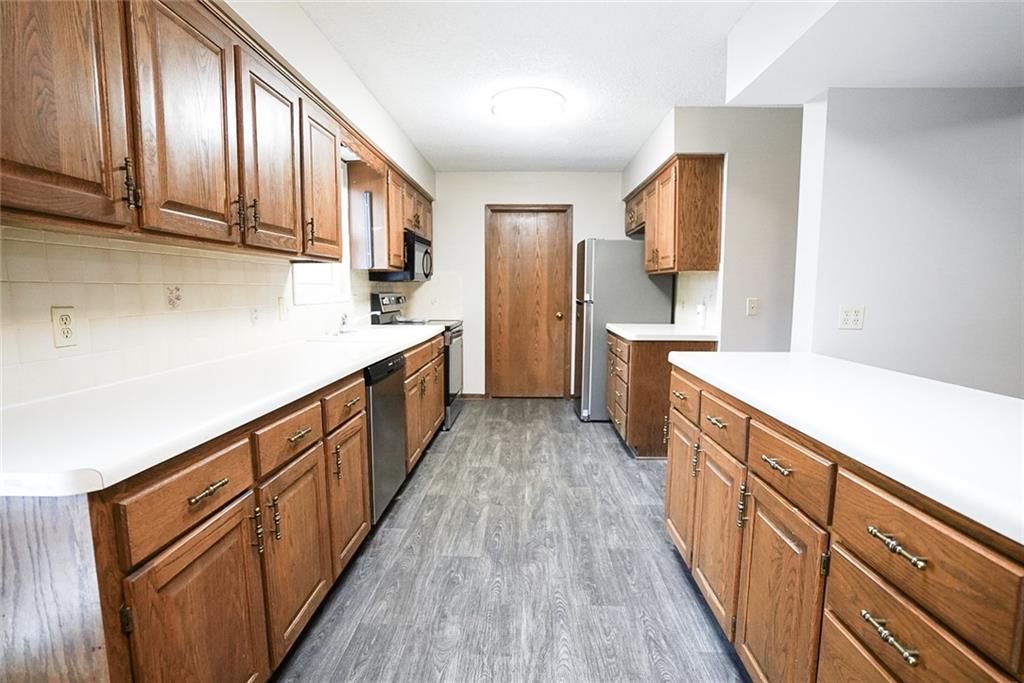 Tons of space in this half-duplex in Olathe with convenient highway access! Master on main level! New carpet in family room and bedrooms, large bedrooms w/walk-in large closets, fireplace, Large open kitchen with pantry & lots of cabinets! new paint, new SS appliances, LVT in hall kitchen and baths. Garage door opener & remote. Tall Privacy/fenced yard. New sod in backyard. Seller just purchased a one year home warranty! Priced to sell quick!!!