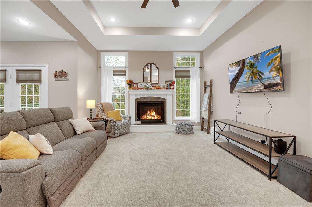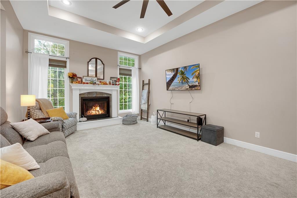 Welcome to this charming 4-bedroom ranch home nestled in the sought-after Deerfield neighborhood of Warrensburg! Main Level: Two spacious bedrooms, including a large primary suite with a beautiful bathroom and generous closet space. Lower Level: Two additional bedrooms and a spacious recreation area, featuring solid flooring throughout — perfect for entertaining or relaxing. Interior Highlights: Bright white-cabinet kitchen with granite countertops, stainless steel appliances, and solid wood flooring. Enjoy the inviting fireplace, clean carpet, and taller-than-average ceilings that add a sense of openness and charm. Exterior Features: A concrete patio, deck area, fully fenced backyard, and stone-landscaped front entry make this home move-in ready and perfect for gatherings. Don’t miss your chance to see this beautiful, well-kept home in one of Warrensburg’s most popular neighborhoods — schedule your showing today!