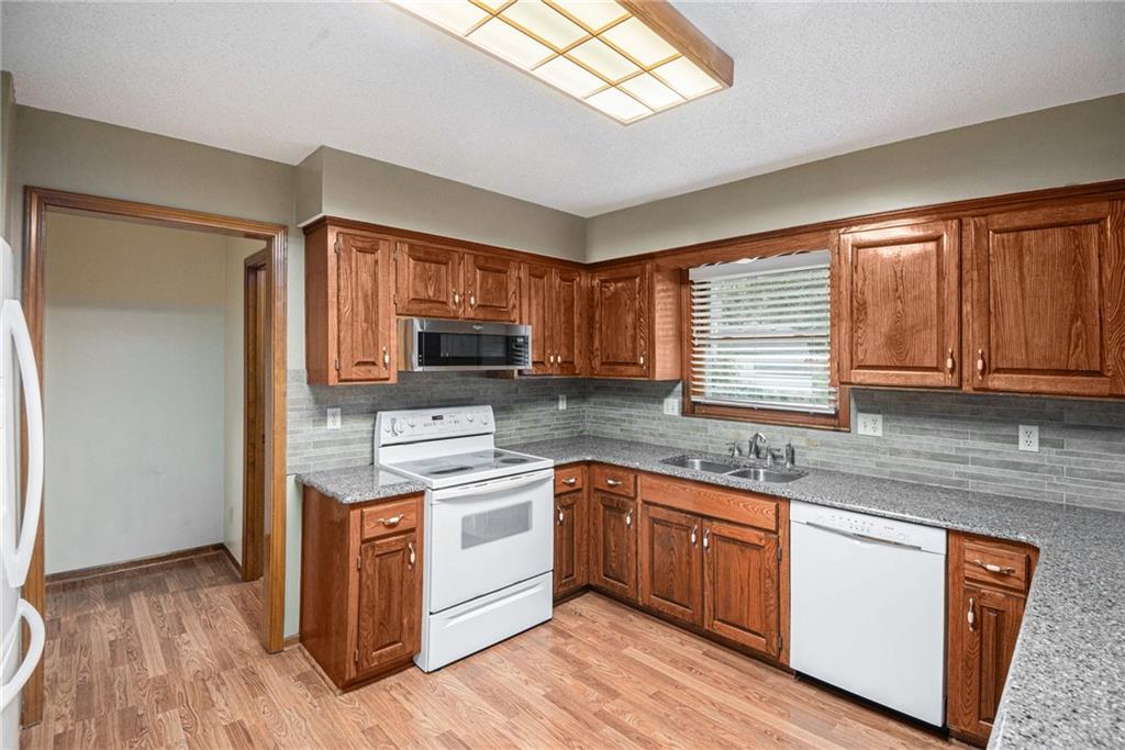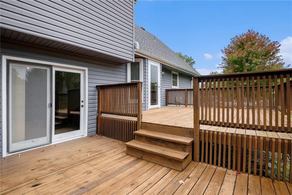 Large south Olathe home with 4 bedrooms, conveniently located with easy access to grocery shopping, restaurants and just a few blocks from the elementary school. Prime cul de sac location sitting on a 17,000+ sf lot that is fully fenced. Brand new roof, low maintenance siding, additional 3rd car driveway, large deck, Quartz countertops in the kitchen and main level laundry are just a few of the things you will love about this home! Plenty of living space with a formal living room and garage level family room that walks out to the backyard. Popular neighborhood with no HOA. Less than a 10 minute drive to Garmin and I-35.