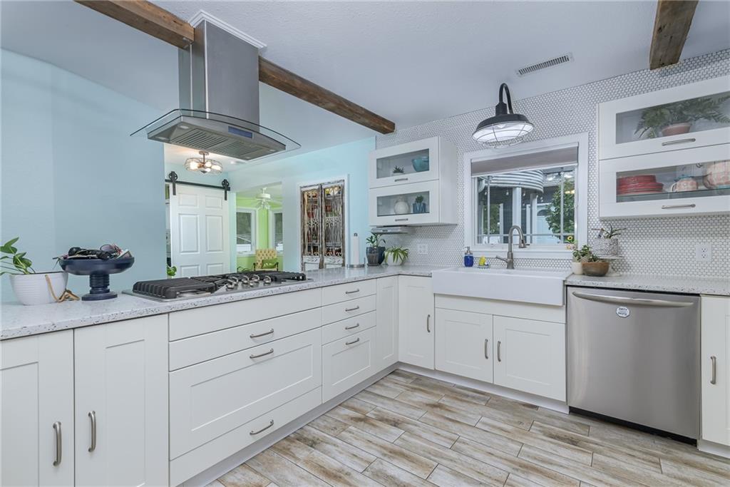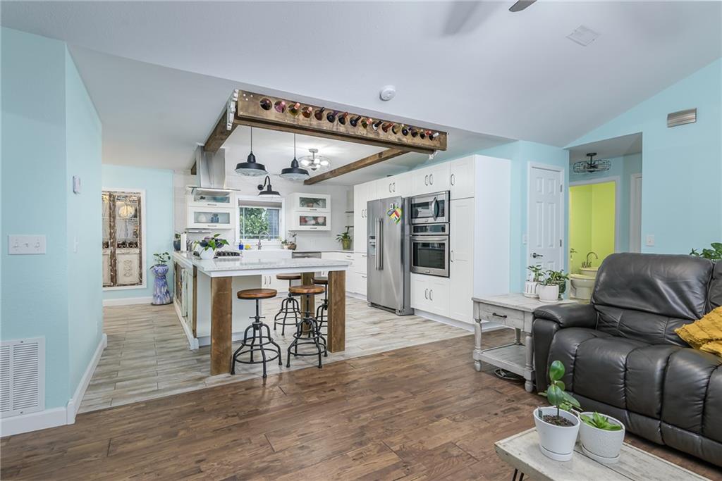 COMPLETELY UPDATED AND MOVE-IN READY, THIS STUNNING 3-BEDROOM RANCH BLENDS MODERN COMFORT WITH SMART, ENERGY-EFFICIENT LIVING! Thoughtfully renovated from the ground up, the home features all-new plumbing, electrical (including a new main line), windows, flooring, kitchen, and baths—plus a new metal roof added last year. With 36 solar panels for low energy costs, this home is as practical as it is beautiful. The bright, open floor plan offers vaulted ceilings, a cozy fireplace in the living room, and a chef’s kitchen with a gas cooktop, built-in appliances, and custom countertops. The primary suite impresses with vaulted ceilings, double vanities, a spacious walk-in shower, and dual walk-in closets. A sunny enclosed porch opens to a private backyard with a gazebo, garden space, and an above-ground pool with a new liner—perfect for summer relaxation. The detached garage provides extra storage with an upstairs loft, all on a well-maintained corner lot with privacy fencing and a convenient location close to everything.