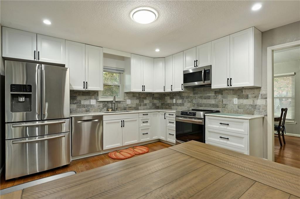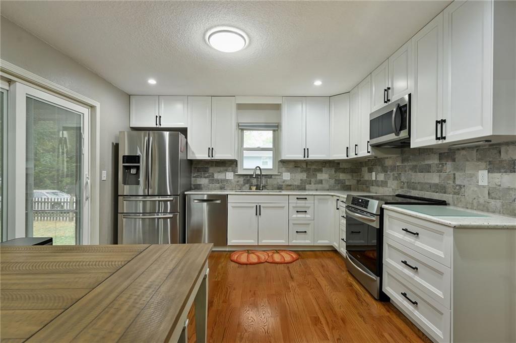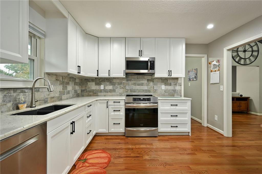 STUNNING updated 3 spacious bedrooms, 3 FULL bath home! BEAUTIFUL new hardwood floors throughout! Relax in your large great room, w/woodburning fireplace and vaulted ceilings, opens up to updated kitchen with newer soft-touch cabinets, with granite countertops! Nice formal dining area! MAIN FLOOR LAUNDRY! 2 years young ROOF! Newer paint inside and out! Finished lower level you'll find family room with cozy fireplace, w/ FULL bath and beautiful laminate floors! ! Enjoy screened-in porch w/fenced backyard! Also, there are nice benefits to corner lot! EXTRA BONUS--LOW utility bills! This much loved IMMACULATE home does not disappoint!