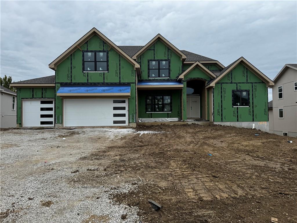 Discover the Audrey — a beautiful blend of modern design and everyday comfort! Step through double entry doors into a vaulted main level filled with natural light. Hardwood floors extend throughout, even into the spacious primary suite. The great room features a grand fireplace with built-ins and a wall of striking black windows that flow seamlessly into the kitchen, showcasing a large quartz table island perfect for meals, homework, or weekend baking. Step out onto a spacious composite deck with vaulted ceiling and enjoy greenspace on this walkout lot or cozy up in the owner’s suite offering a spa-like bath and custom closet built-ins. A flexible dining room (ideal for office or play space), laundry, and half bath complete the main level. Upstairs, the roomy loft provides a comfortable hangout space for games, movie nights, or guests. All three bedrooms have walk-in closets and ensuite bath access. Located in the Liberty School District, with lower property taxes and the serenity of living just outside city limits. Estimated completion end January 2026.