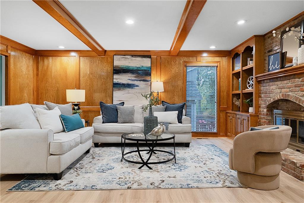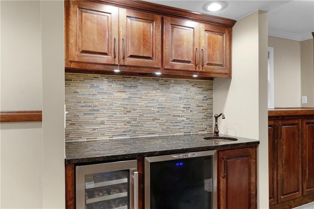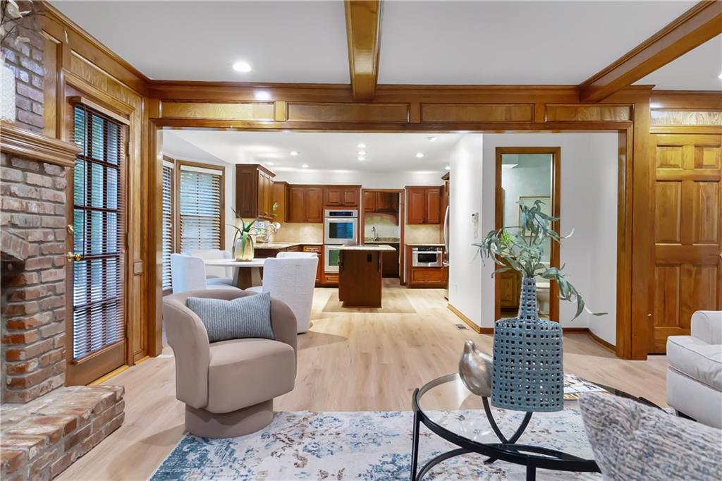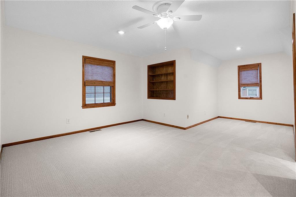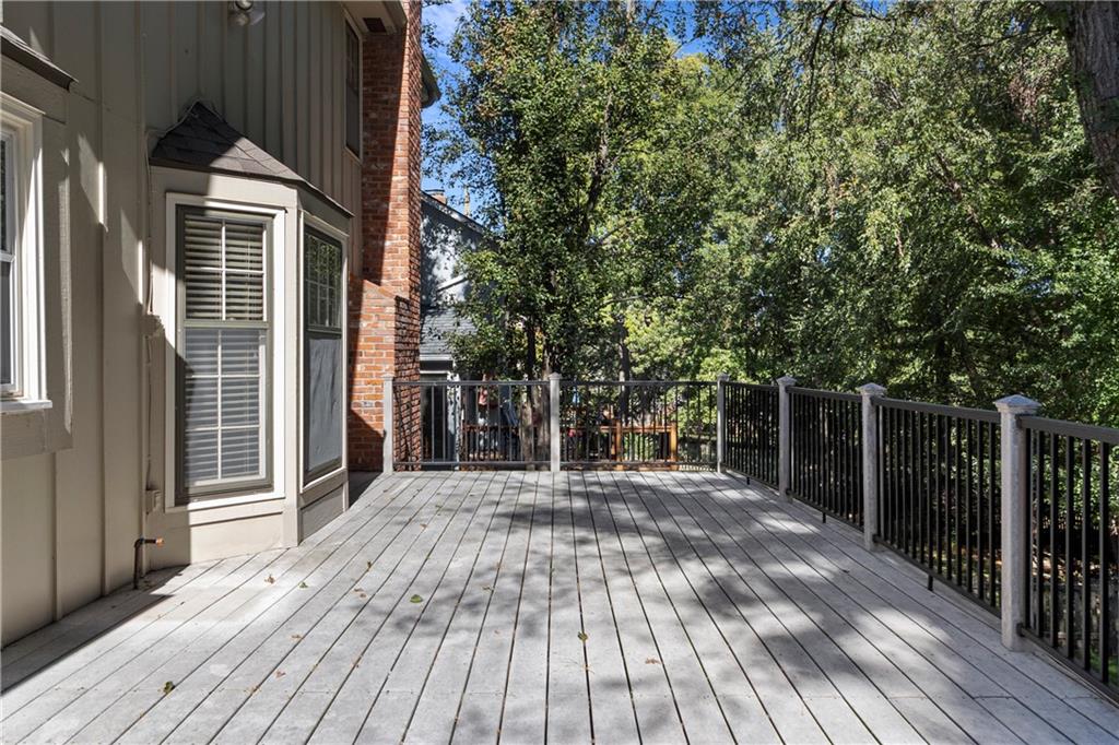 This beautifully maintained 2-story home in the award-winning Blue Valley School District shines with pride of ownership and thoughtful updates throughout. Step inside to find fresh interior paint, new carpet, and luxury vinyl plank flooring, all enhanced by abundant natural light. The main level offers a versatile home office, a formal dining room, and a spacious family room featuring a charming brick fireplace, built-in shelving, and a wet bar—perfect for entertaining. The updated kitchen is a chef’s delight with double ovens, generous cabinetry, and custom spice racks flanking the refrigerator. A large laundry/mudroom off the kitchen includes a sink and direct access to the deck and garage, adding everyday convenience. Upstairs, you’ll find two ensuite bedrooms, including a spacious primary suite with a beautifully updated bath, along with a second ensuite ideal for guests or family members seeking extra privacy. Enjoy outdoor living on the expansive Trex deck overlooking a fenced, tree-lined backyard with a sprinkler system, plus a lower patio off the walkout basement—perfect for relaxing or entertaining. Major updates include a 1-year-old roof and an 8-year-old HVAC system, giving peace of mind for years to come. Neighborhood amenities include two community pools, a children’s pool, basketball court, and playground. Nearby Kensington Park offers 11+ acres of green space, walking trails, tennis courts, and more. With easy access to highways, shopping, and restaurants—this home truly has it all. Meticulously cared for and move-in ready, this home combines comfort, function, and timeless charm in one of the area’s most sought-after neighborhoods. Don’t wait!