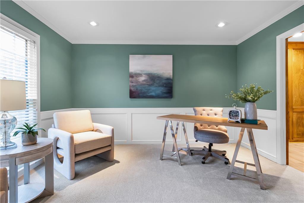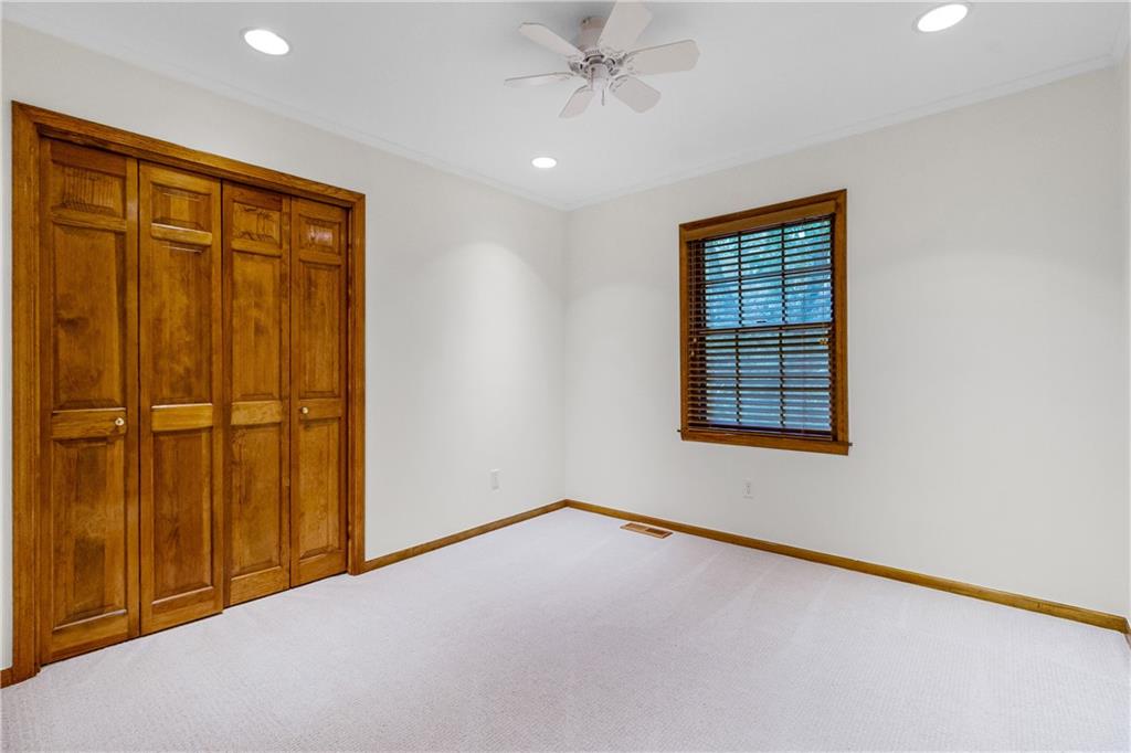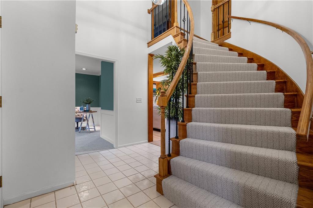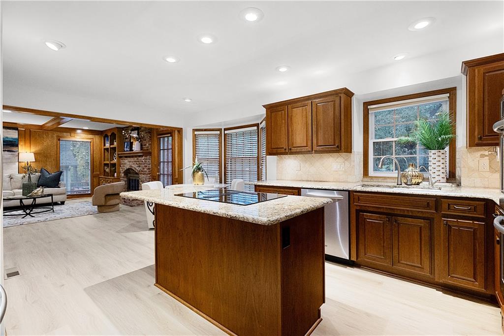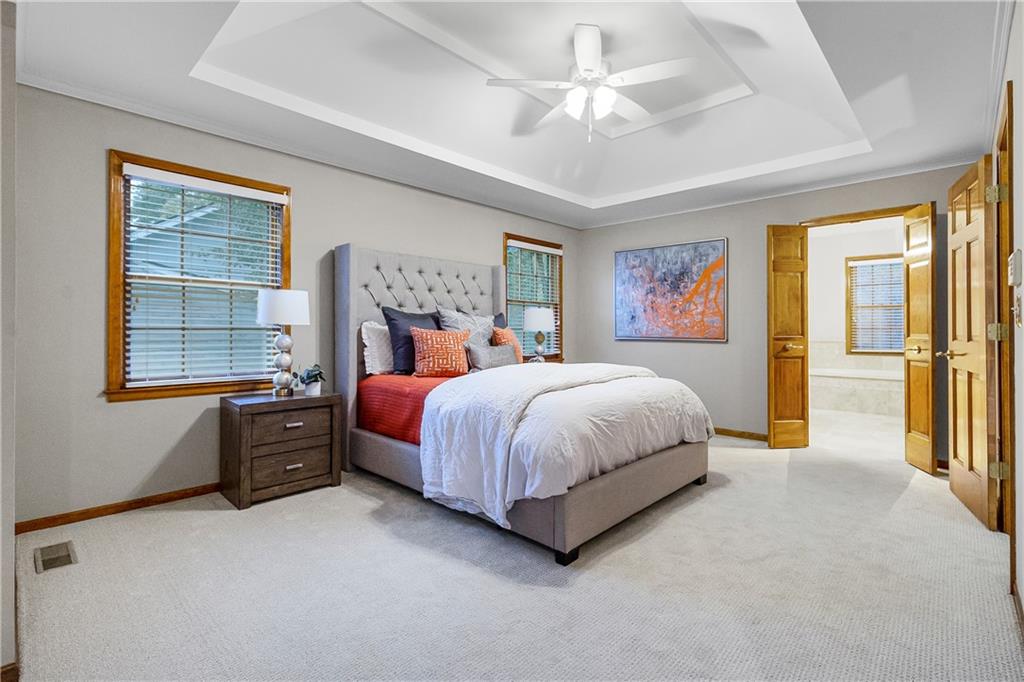 This beautifully maintained 2-story home in the award-winning Blue Valley School District shines with pride of ownership and thoughtful updates throughout. Step inside to find fresh interior paint, new carpet, and luxury vinyl plank flooring, all enhanced by abundant natural light. The main level offers a versatile home office, a formal dining room, and a spacious family room featuring a charming brick fireplace, built-in shelving, and a wet bar—perfect for entertaining. The updated kitchen is a chef’s delight with double ovens, generous cabinetry, and custom spice racks flanking the refrigerator. A large laundry/mudroom off the kitchen includes a sink and direct access to the deck and garage, adding everyday convenience. Upstairs, you’ll find two ensuite bedrooms, including a spacious primary suite with a beautifully updated bath, along with a second ensuite ideal for guests or family members seeking extra privacy. Enjoy outdoor living on the expansive Trex deck overlooking a fenced, tree-lined backyard with a sprinkler system, plus a lower patio off the walkout basement—perfect for relaxing or entertaining. Major updates include a 1-year-old roof and an 8-year-old HVAC system, giving peace of mind for years to come. Neighborhood amenities include two community pools, a children’s pool, basketball court, and playground. Nearby Kensington Park offers 11+ acres of green space, walking trails, tennis courts, and more. With easy access to highways, shopping, and restaurants—this home truly has it all. Meticulously cared for and move-in ready, this home combines comfort, function, and timeless charm in one of the area’s most sought-after neighborhoods. Don’t wait!