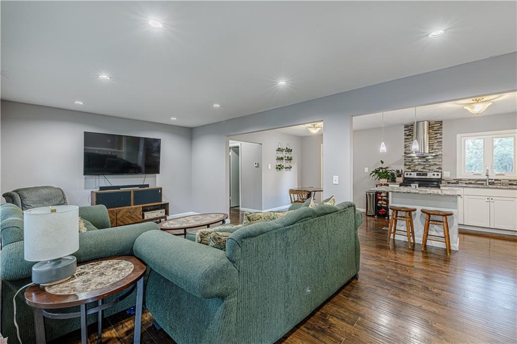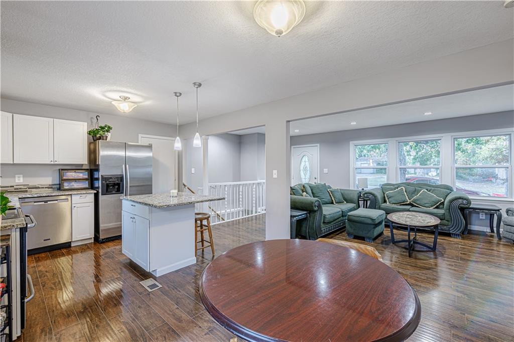 This charming home is move-in ready and full of updates! The open-concept kitchen and living area feature beautiful hardwood floors and plenty of natural light. The kitchen offers granite countertops, modern cabinetry, and room for entertaining. Fresh interior paint gives the home a clean, inviting feel. Enjoy outdoor living on the newer deck (built in 2020) overlooking a spacious fenced backyard with a concrete pad—perfect for a workshop, additional garage, or patio space. The finished basement adds valuable living area with a full bathroom and a non-conforming third bedroom, ideal for guests or a home office. Roof was partially replaced in 2024 following storm damage. Conveniently located near shopping, dining, and easy highway access.