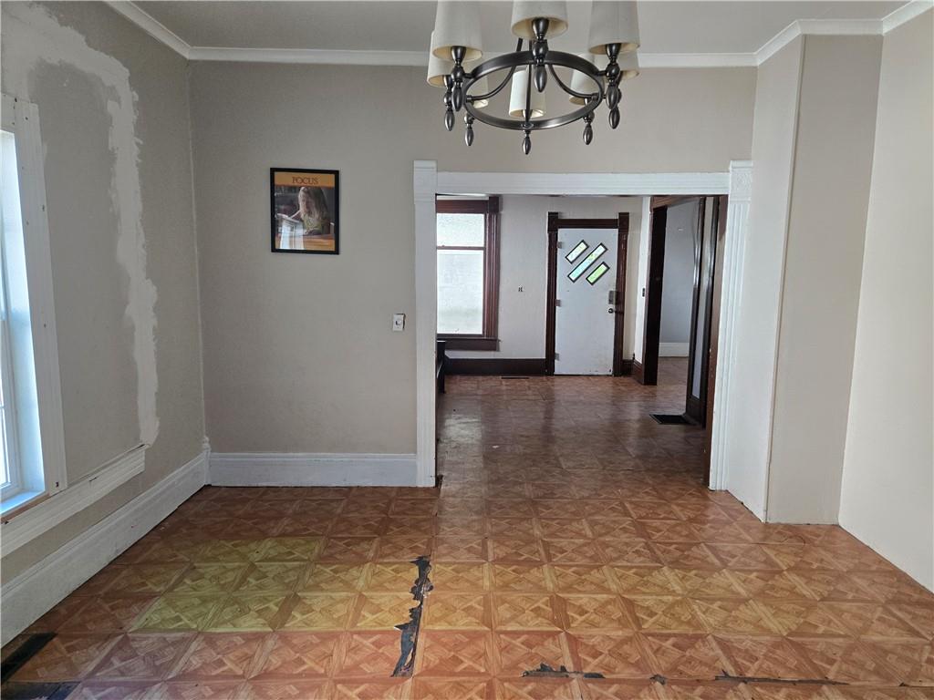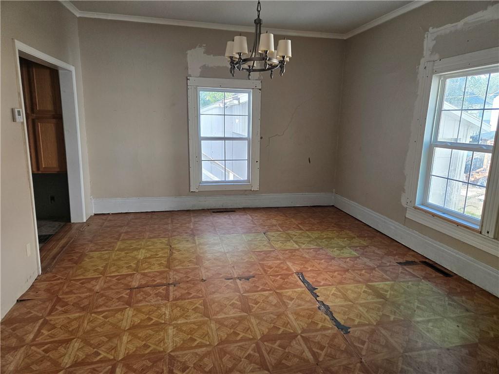 This 4 bedroom, 1½ bath home was used as a rental (cheaper than dorm rentals). Open foyer highlights beautiful stairway/woodwork and opens to formal dining and living room. There is original hardwood flooring underneath the linoleum and carpeting. The four bedrooms are all upstairs with a 4 square landing between the bedrooms and the full bath. The kitchen was remodeled a few years ago, black double sink and newer cabinets, a built-in gas downdraft cookstove and double electric oven, all appliances stay! Private driveway to a double car detached garage and a nice big backyard. This home is priced to sell, with all new windows so with some paint, flooring and a little TLC, what a great return on your investment with this being a college town, rentals are well sought after!